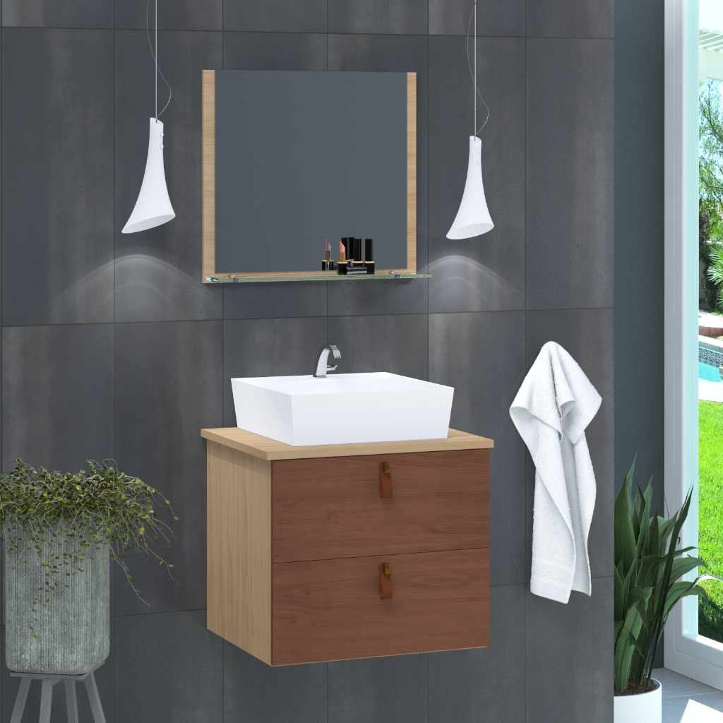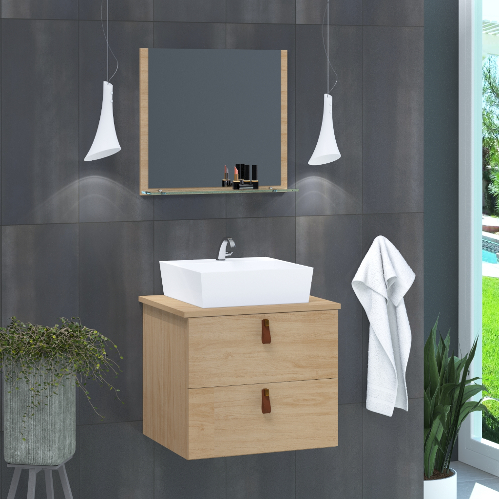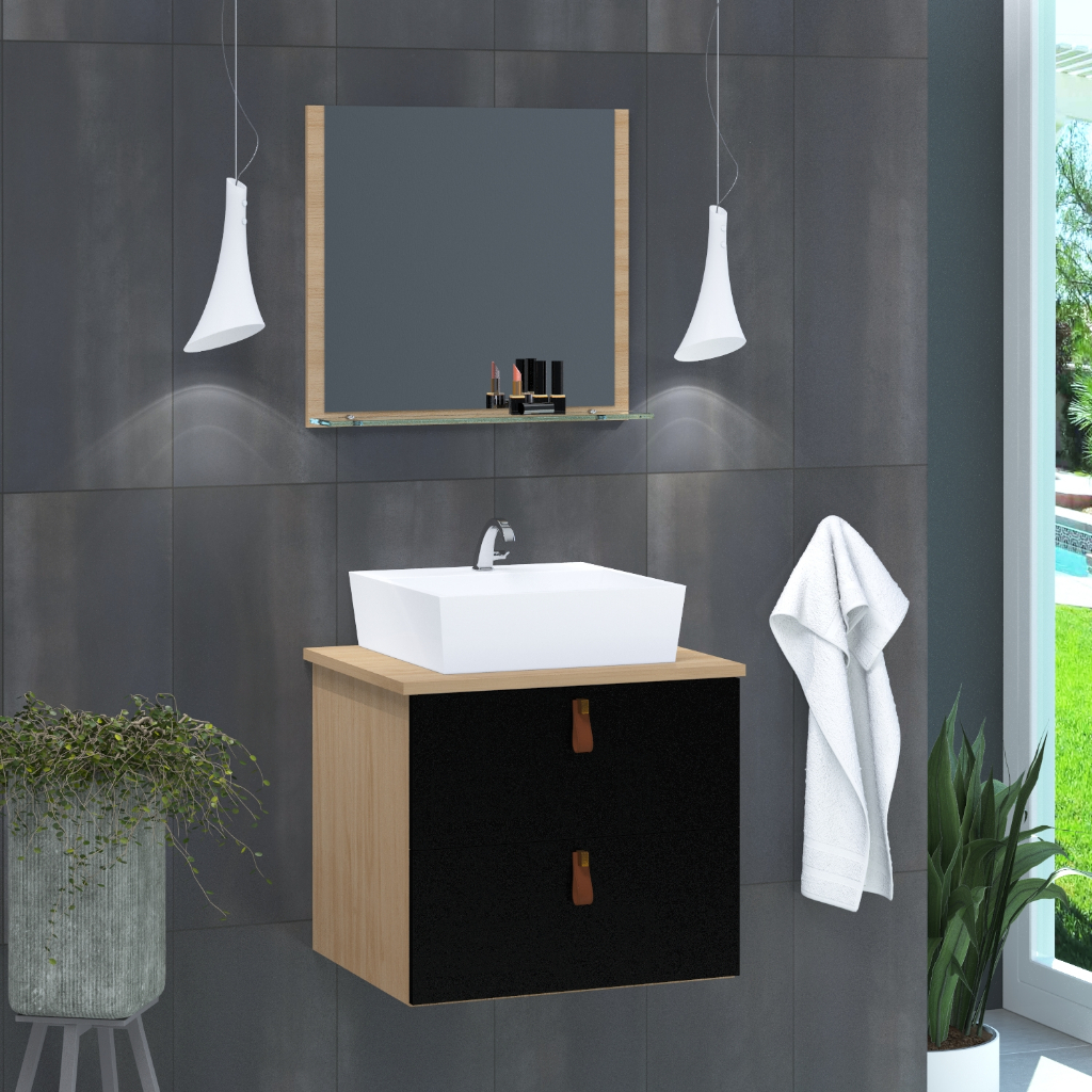 Conjunto Gabinete Banheiro Berlim 45cm + Espelheira + Cuba