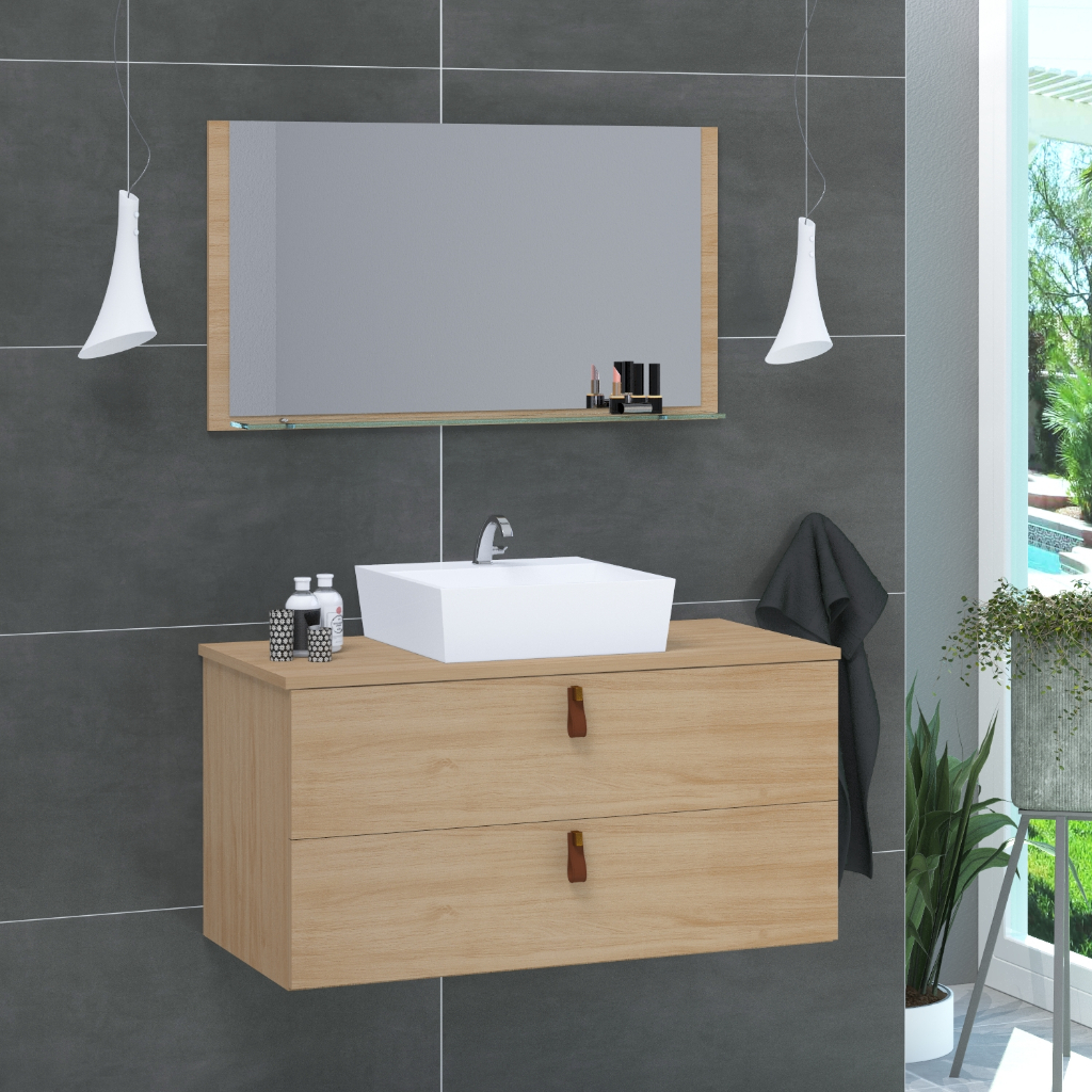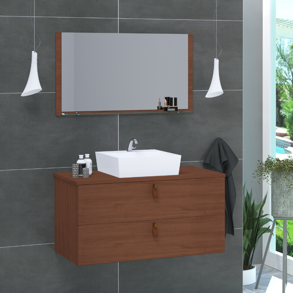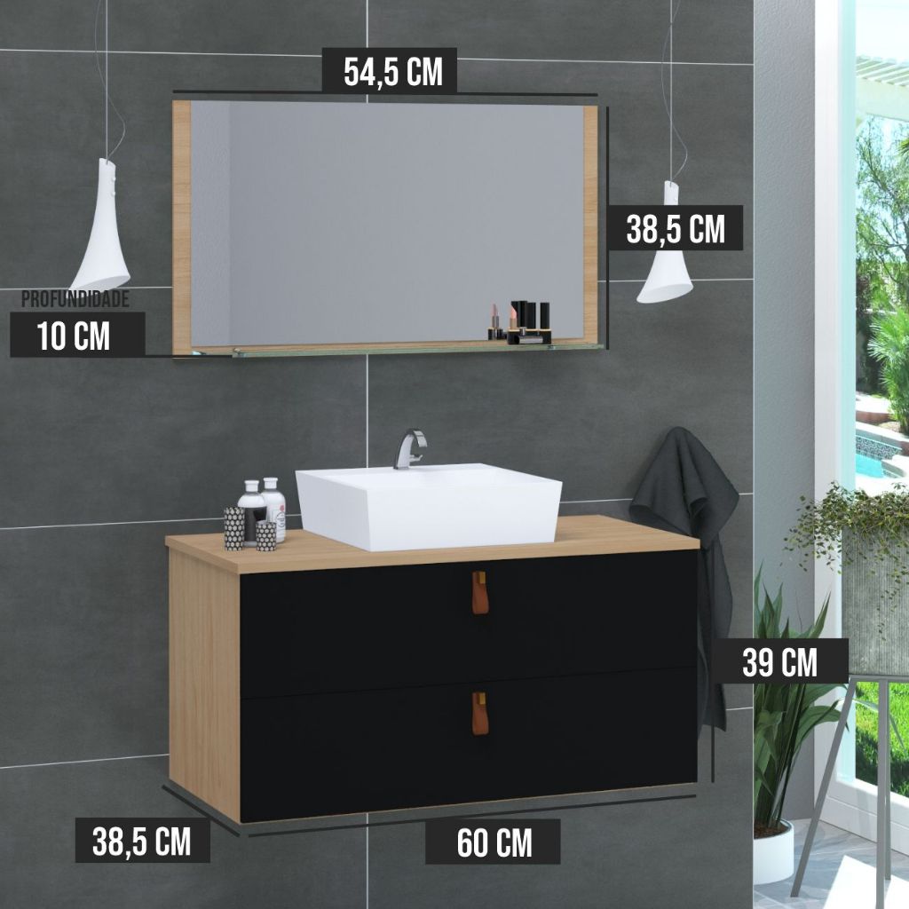 Conjunto Armário de Banheiro Berlim 60 cm MDF + Espeplheira + cuba