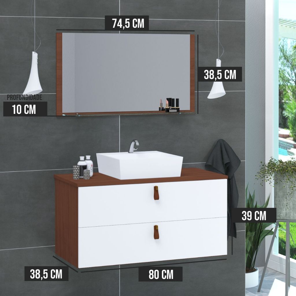 Conjunto Armário de Banheiro Berlim 80 cm MDF + Espeplheira + cuba