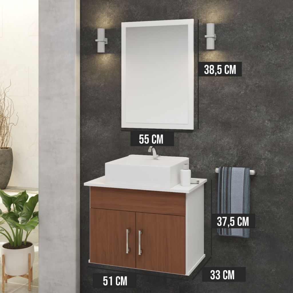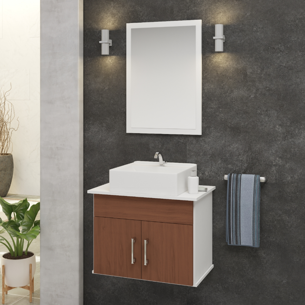 Conjunto Cairo Mdf Gabinete De Banheiro Com Pia E Espelheira