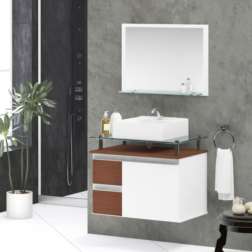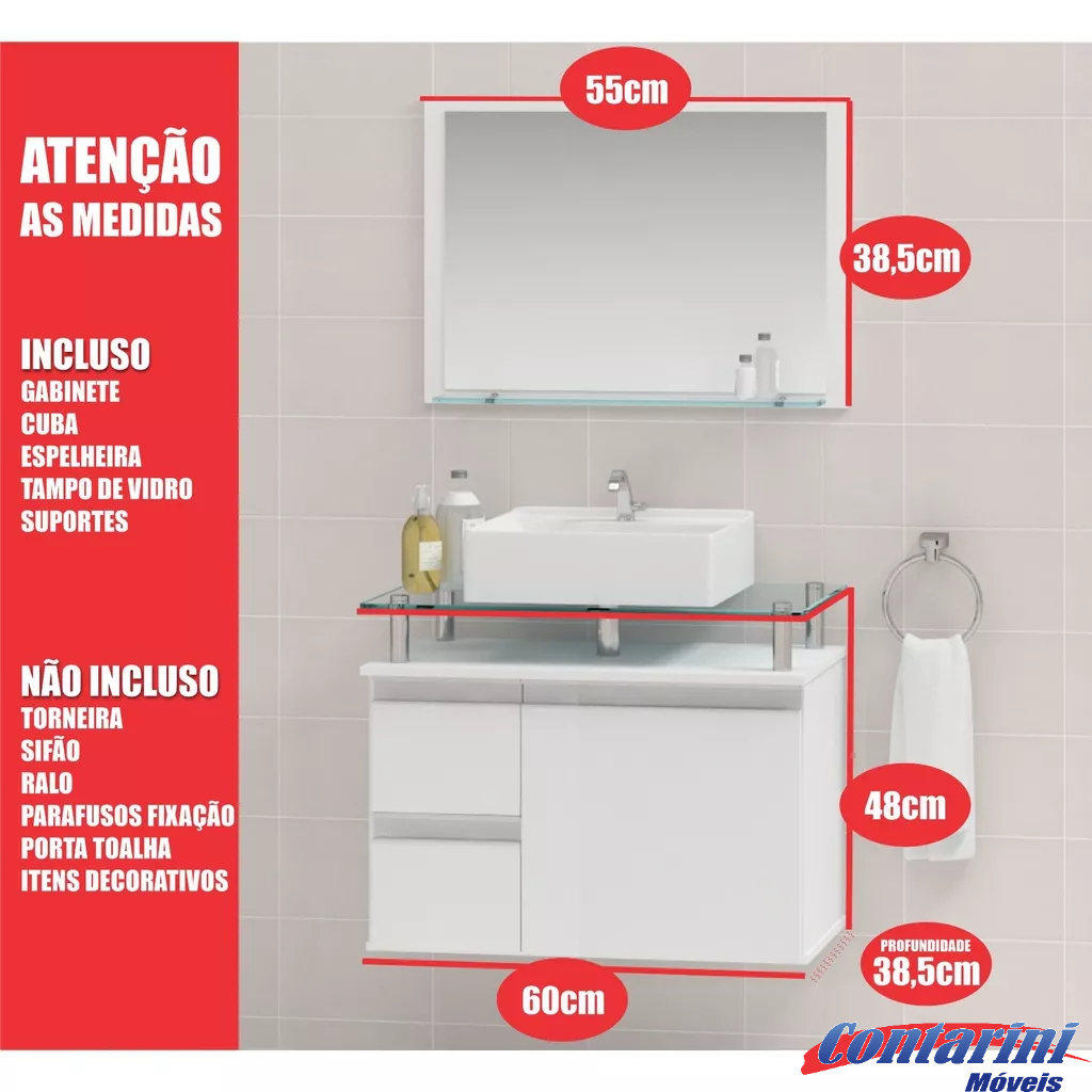Conjunto Diamante MDF gabinete de banheiro com pia e espelheira 60cm