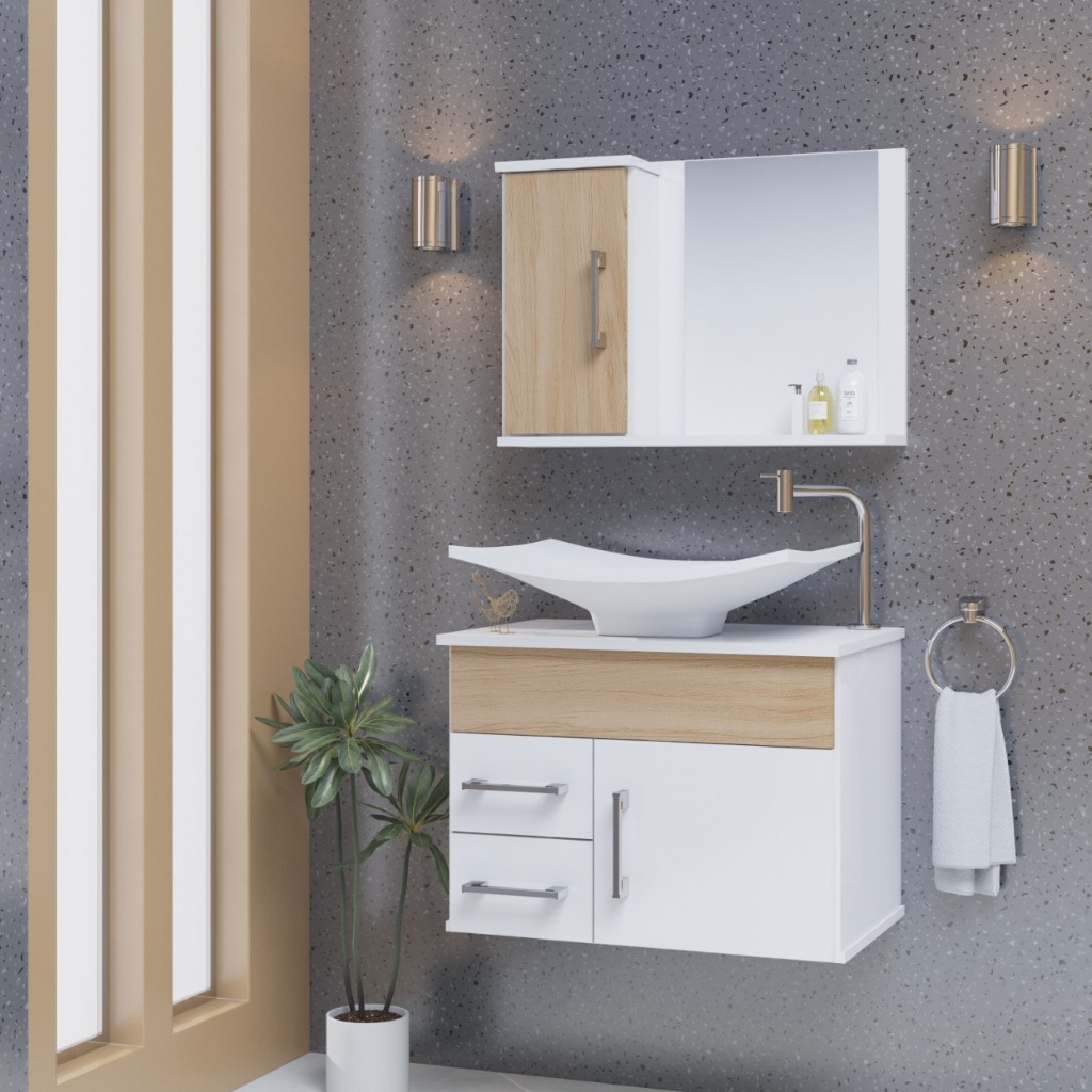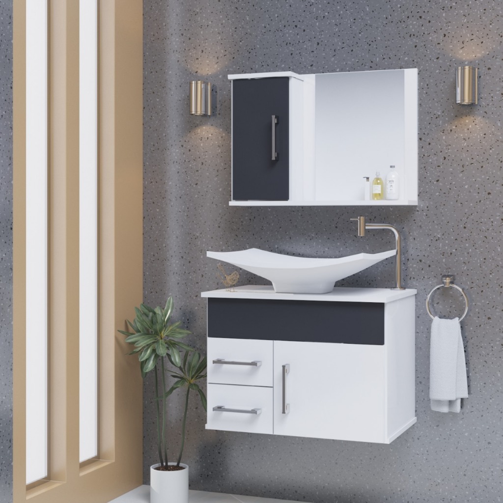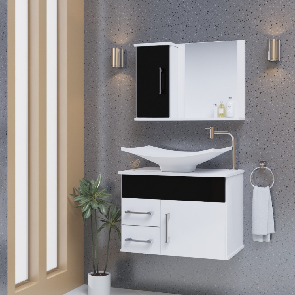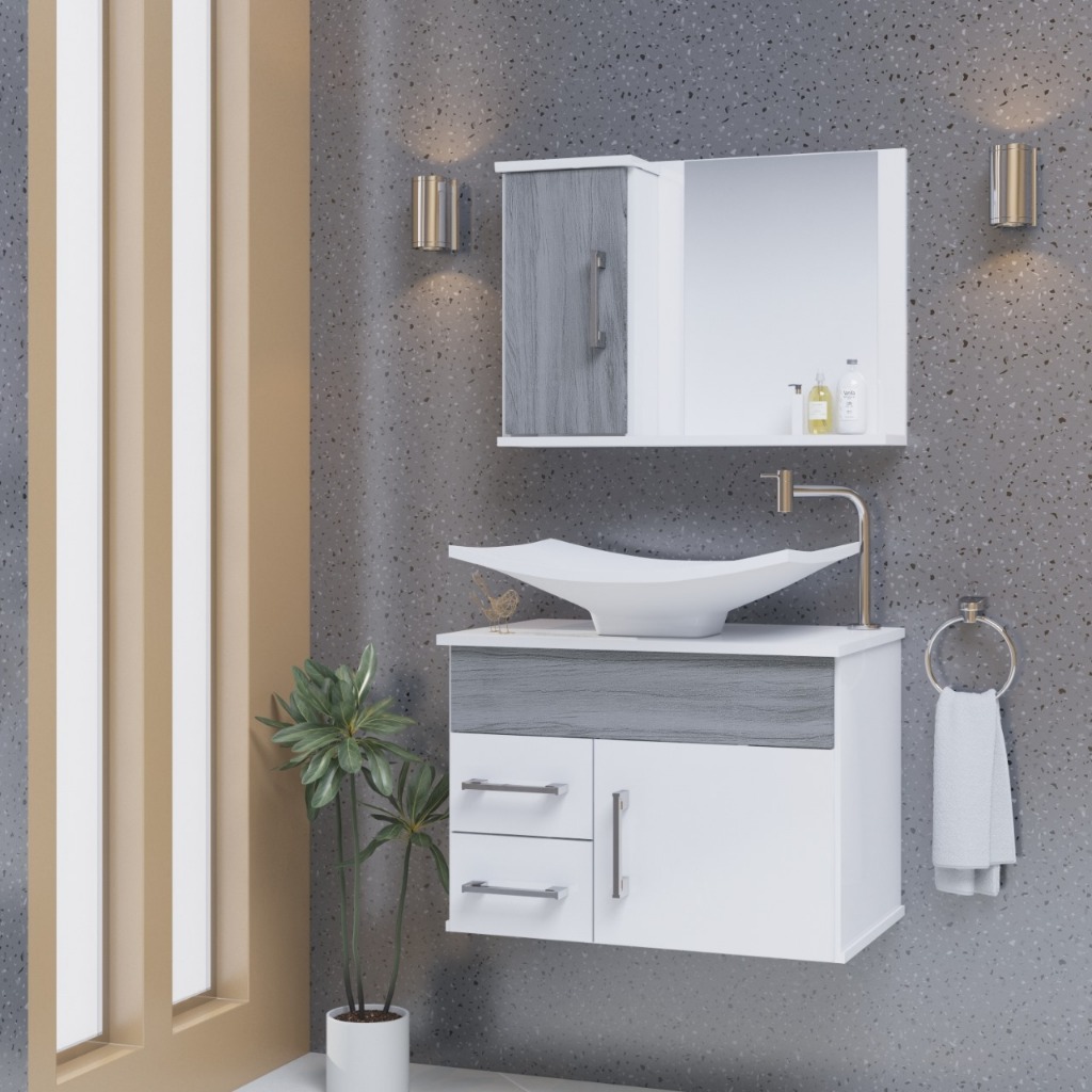 Conjunto Turin MDF gabinete de banheiro com pia e espelheira