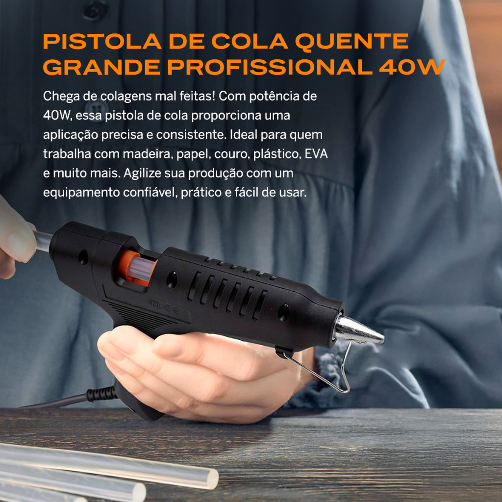 Pistola De Cola Quente Profissional Grande 40w 127-220v Bivolt Alta Qualidade Premium
