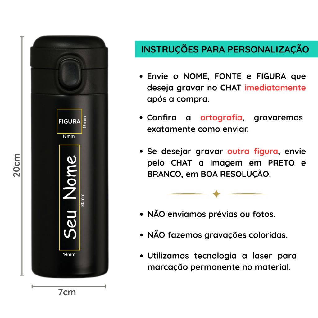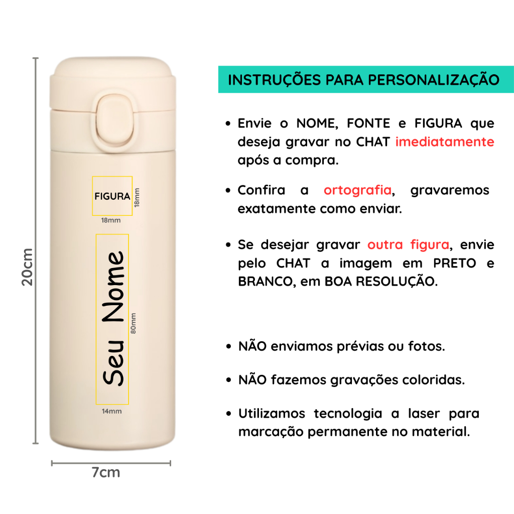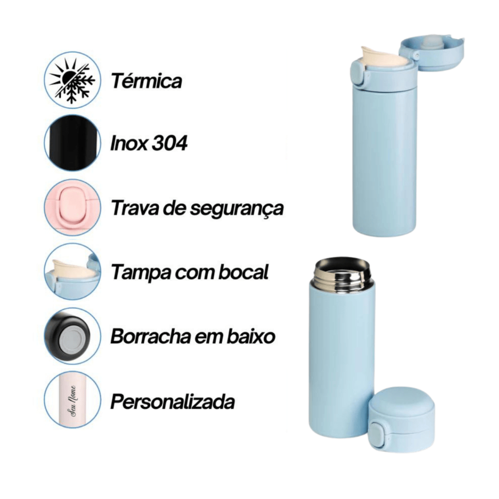 Garrafinha Térmica Infantil p/ lancheira 320 ML com Nome Gravado