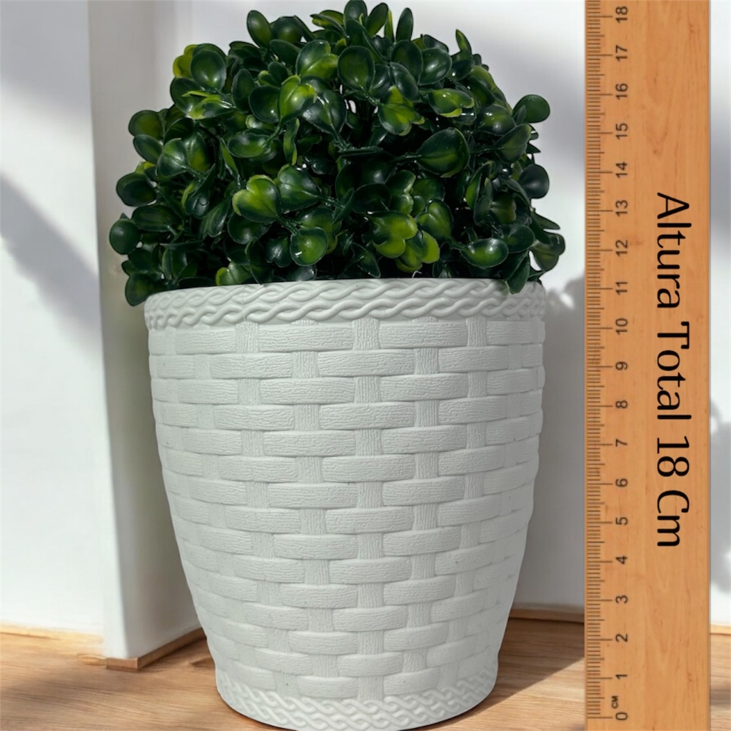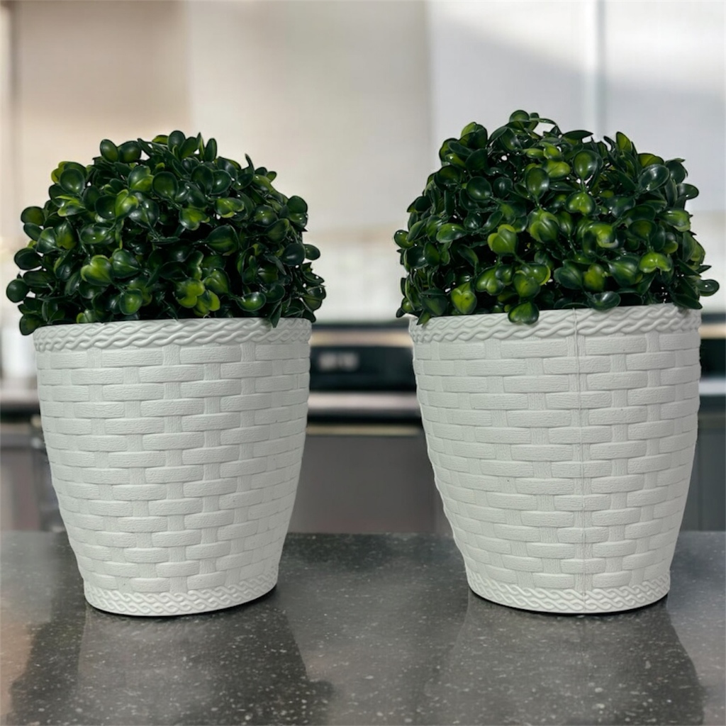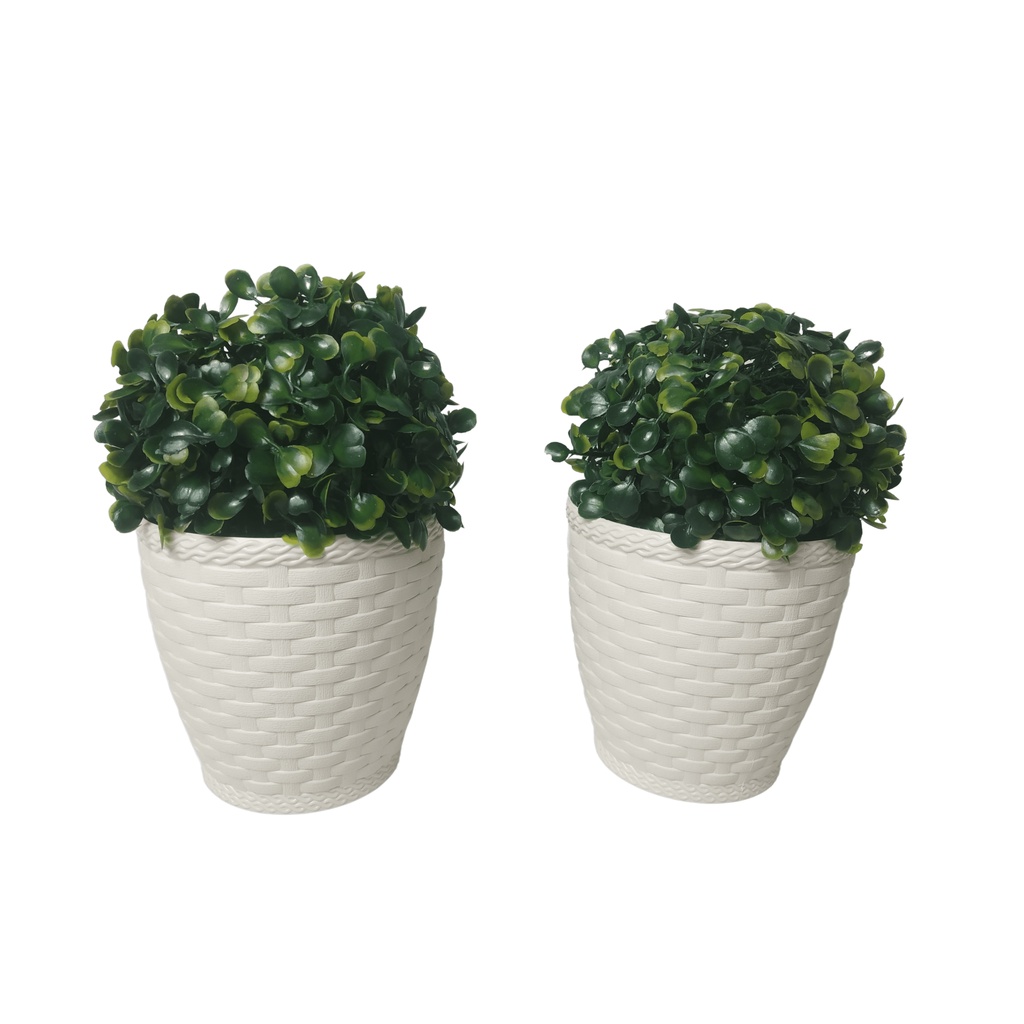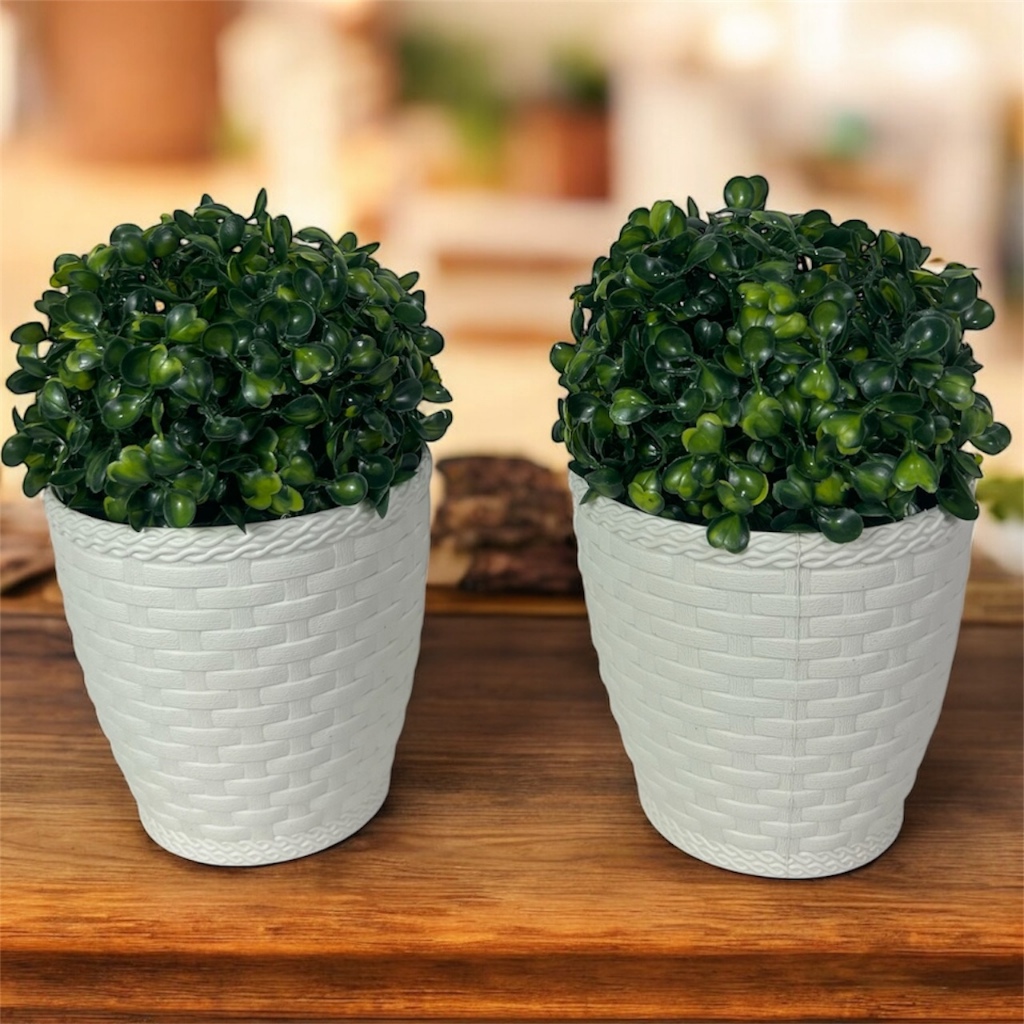 2 Planta Buchinho Verde Bola Artificial + 2 Vaso de Ratan Branco a Pronta Entrega