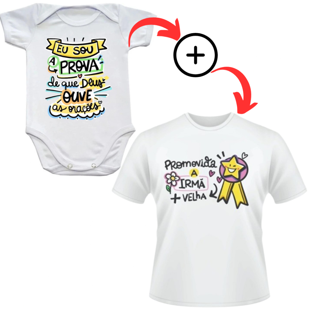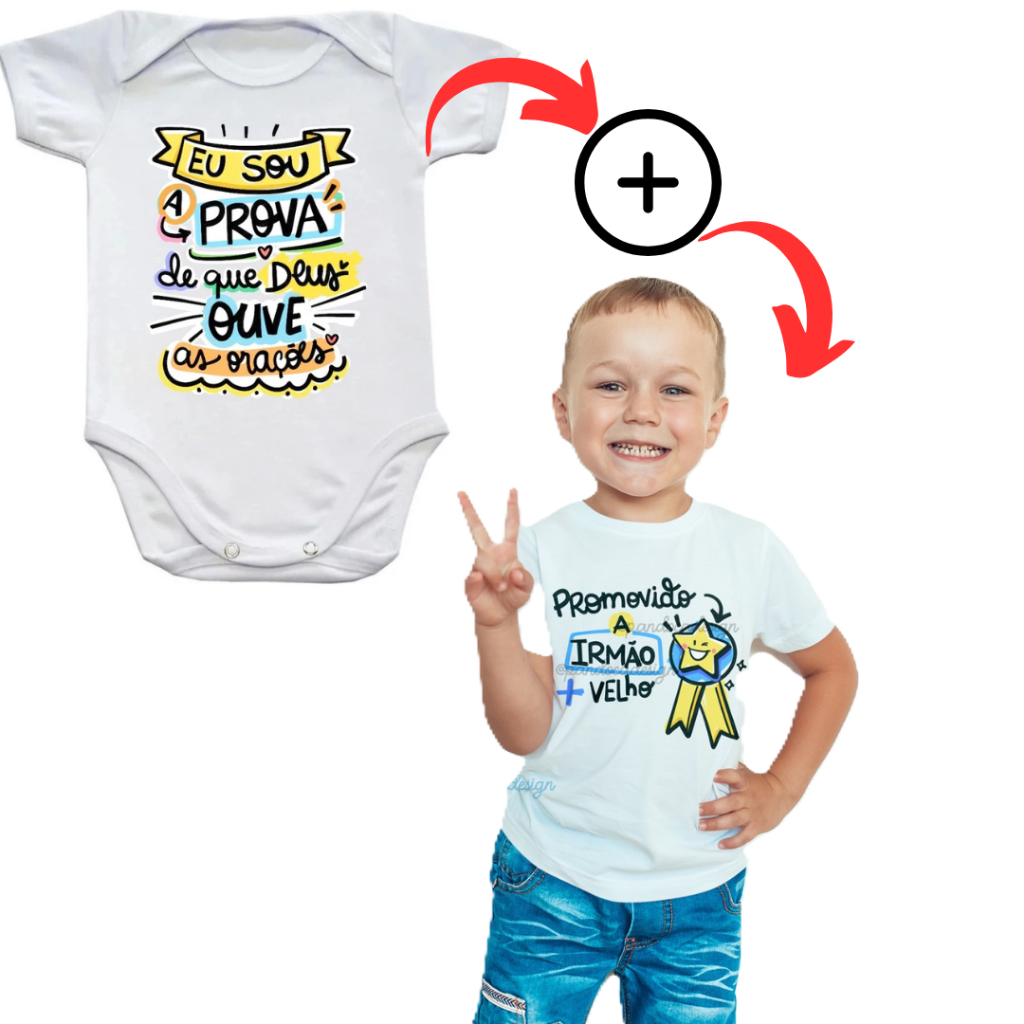 Kit Body + Camiseta: Eu Sou a Prova de que Deus Ouve as Orações + Camis Promovido a Irmão mais Velho