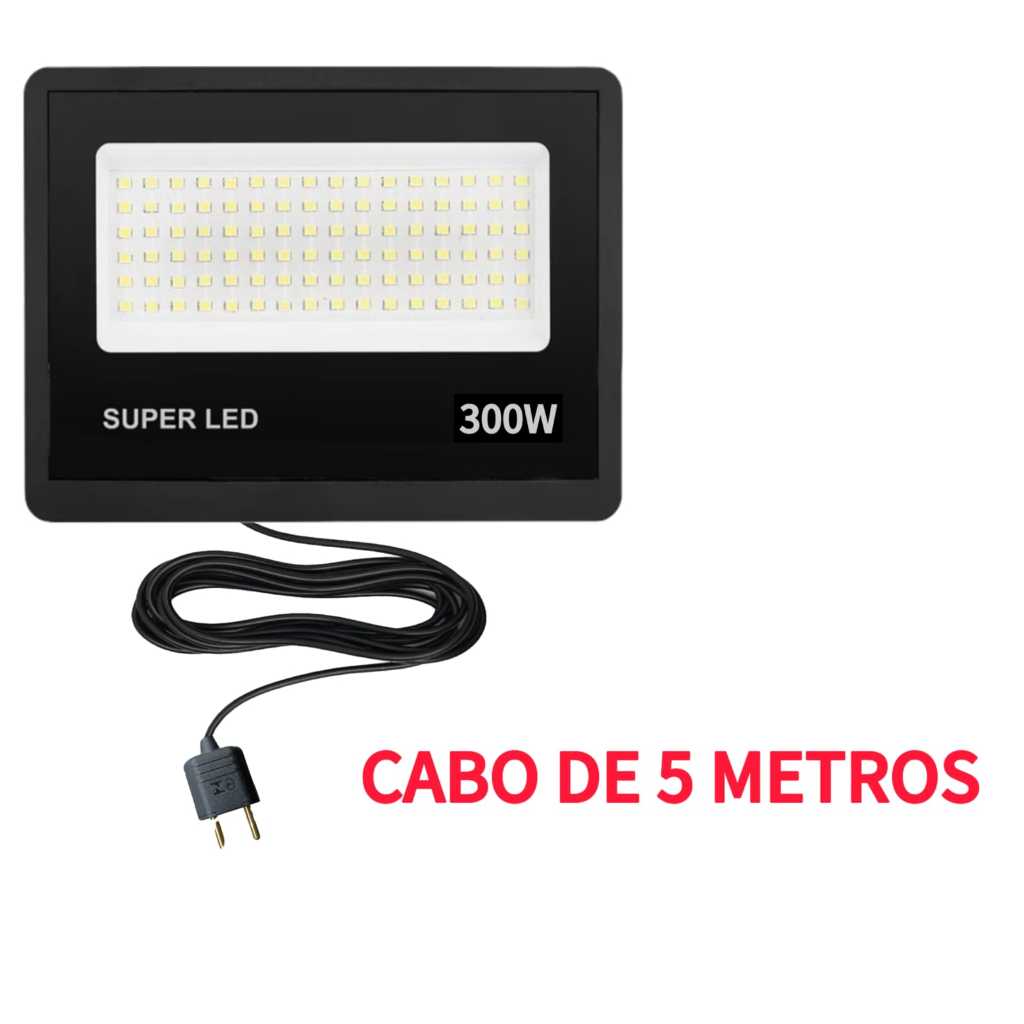 KIT Refletor 300w holofote com tomada extensão fio 5 metros luz forte branca fria IP66 bivolt
