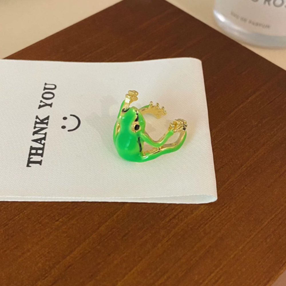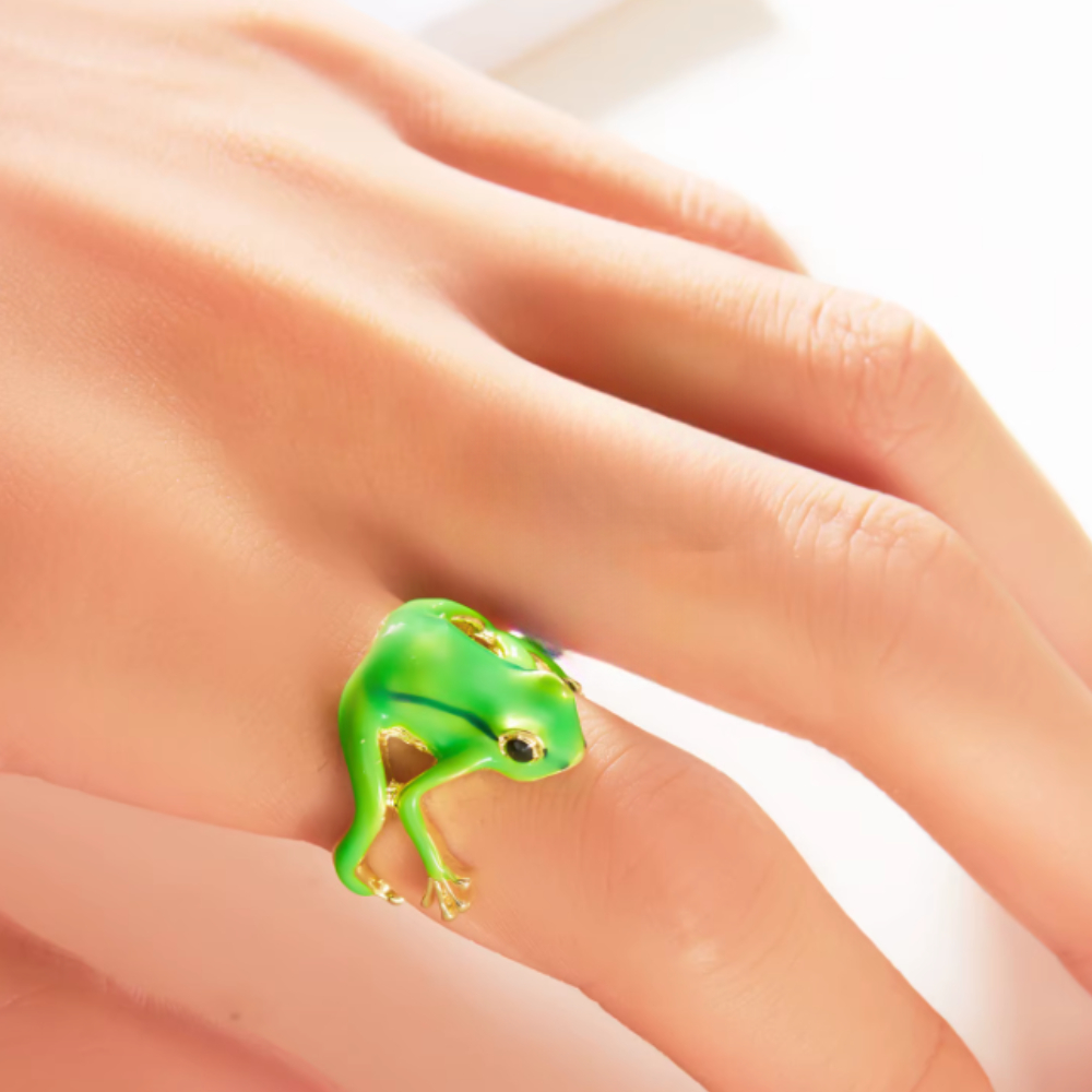 Anel Ajustável Sapinho Verde Esmaltado Joia Divertida e Estilosa