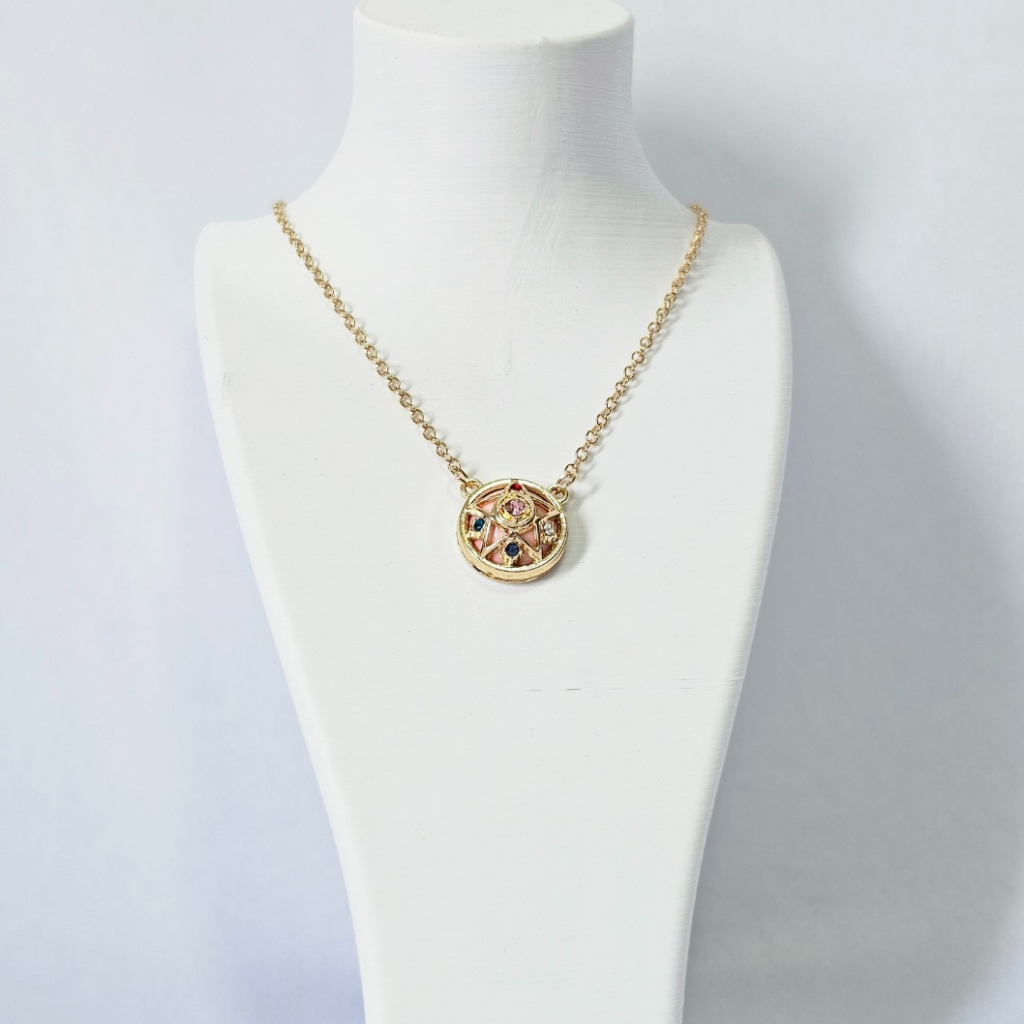 Colar Sailor Moon Medalhão Estelar e Coração Lunar