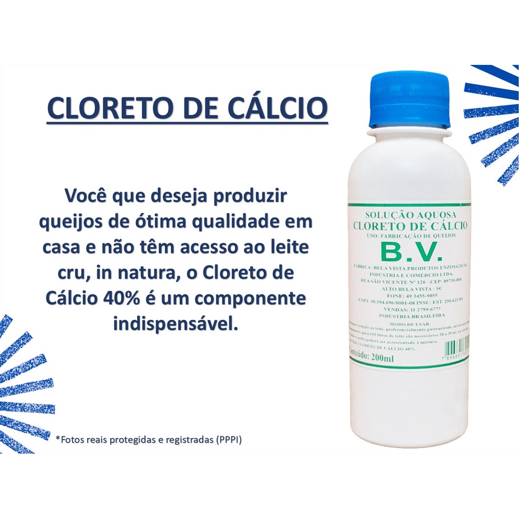 Conjunto Com 2 Cloretos de Cálcio 40% Bela Vista Para Produção Queijos Caseiros Minas Mussarela Canastra Padrão Coalho
