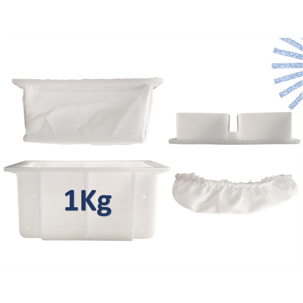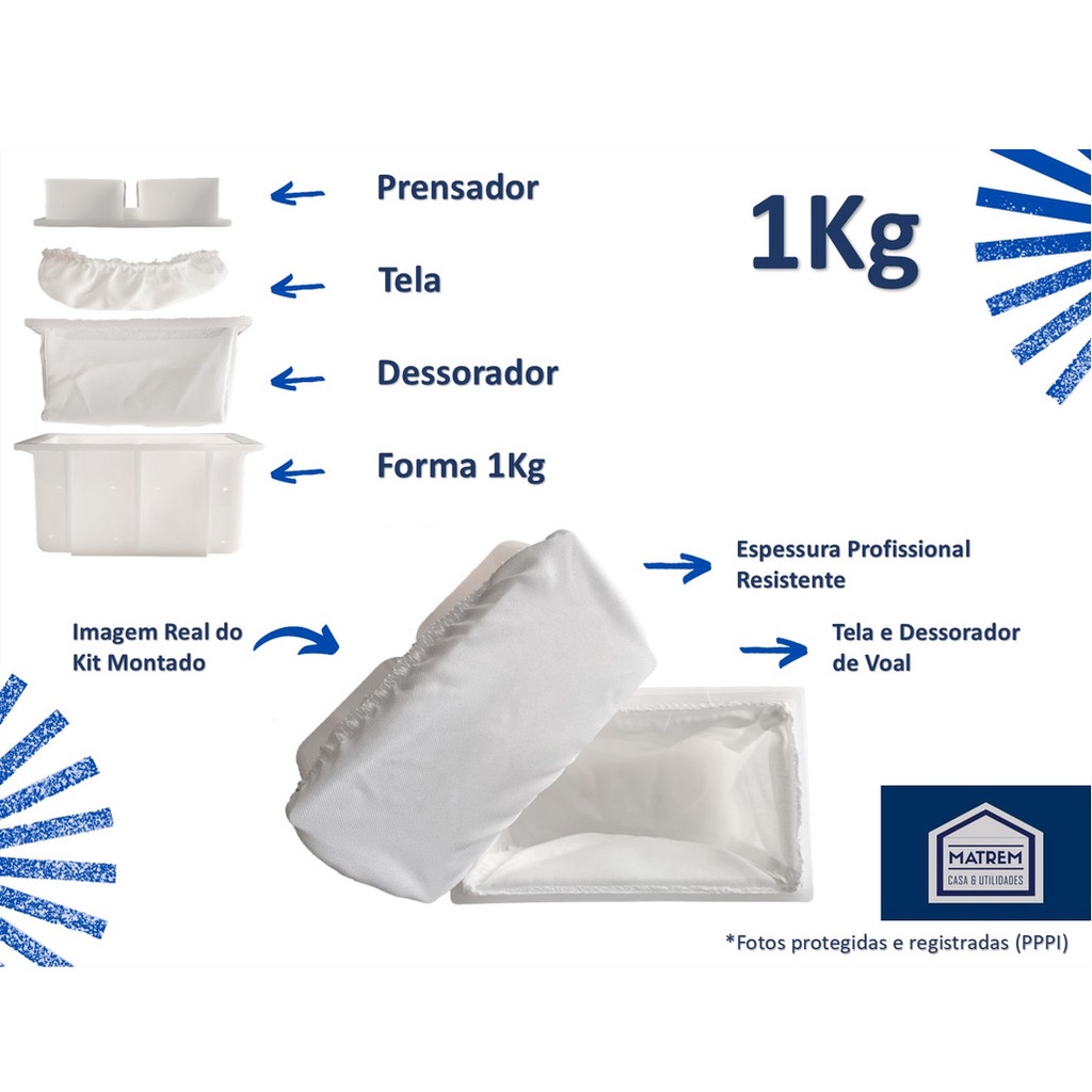 Kit Completo Para Queijo Coalho Com Forma 1Kg Prensador Dessorador E Tela