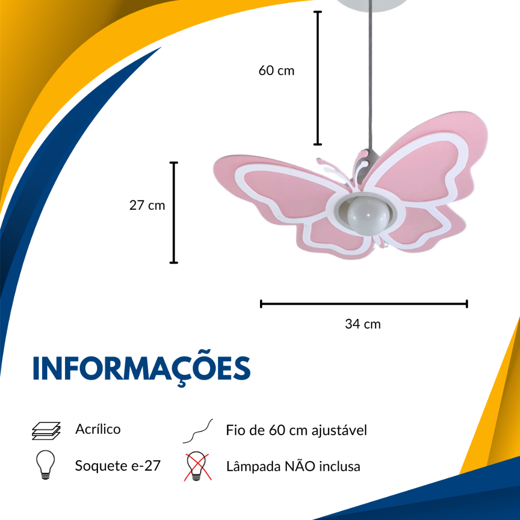 Luminária Borboleta Rosa Pendente Quarto infantil lustre decoração quarto de menina pendente branco
