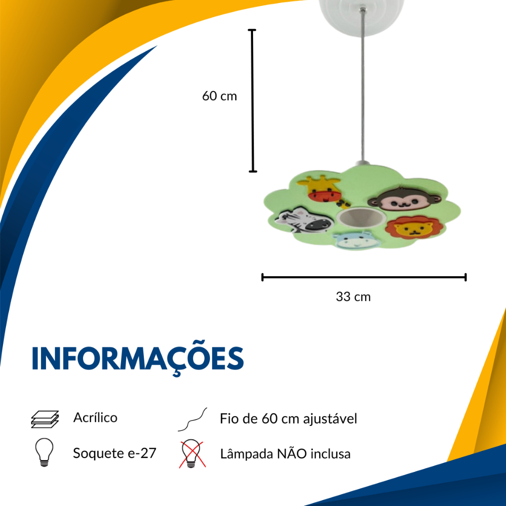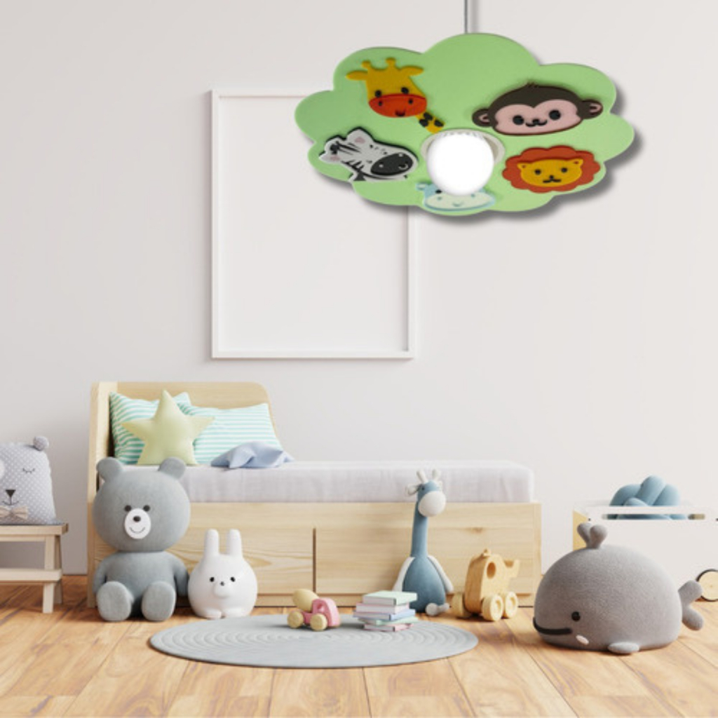 Lustre Pendente Infantil Safari Animais Selva Decoração Quarto Bebê Criança Menino Menina P LED