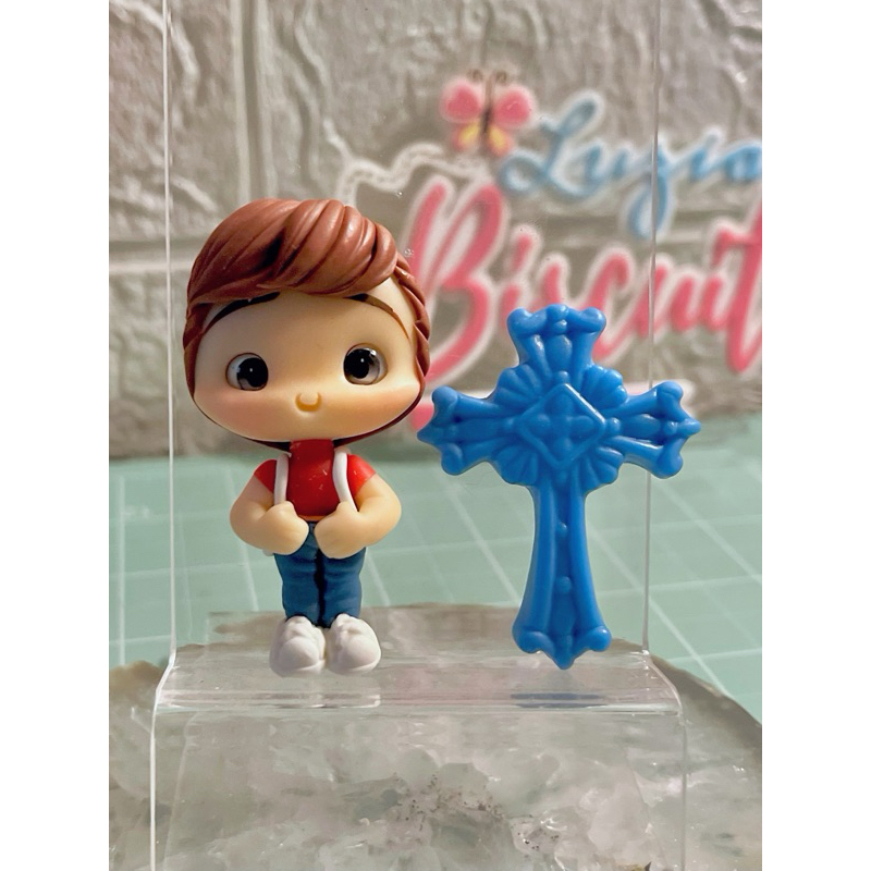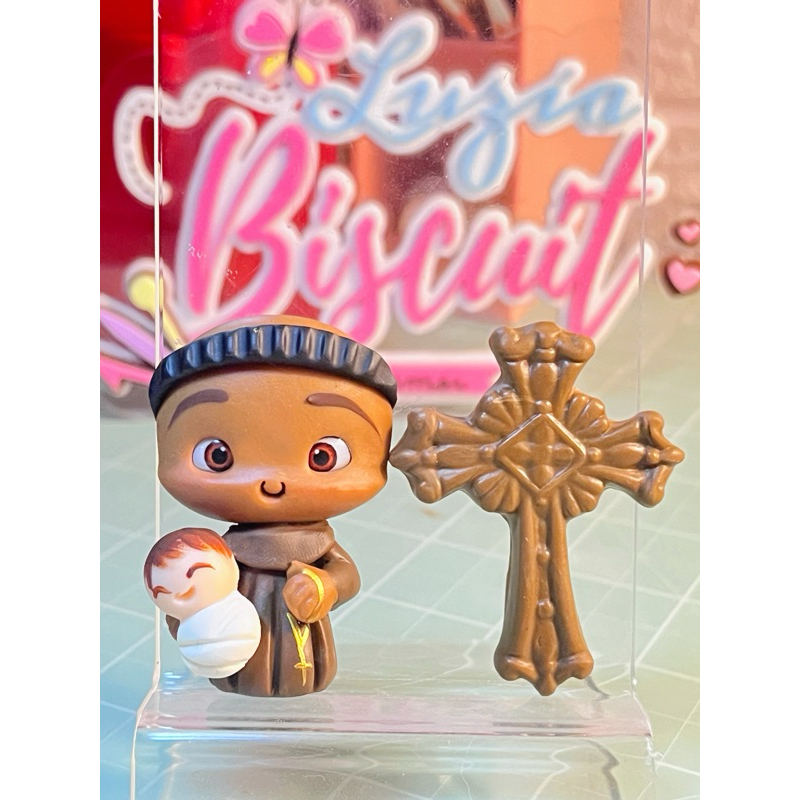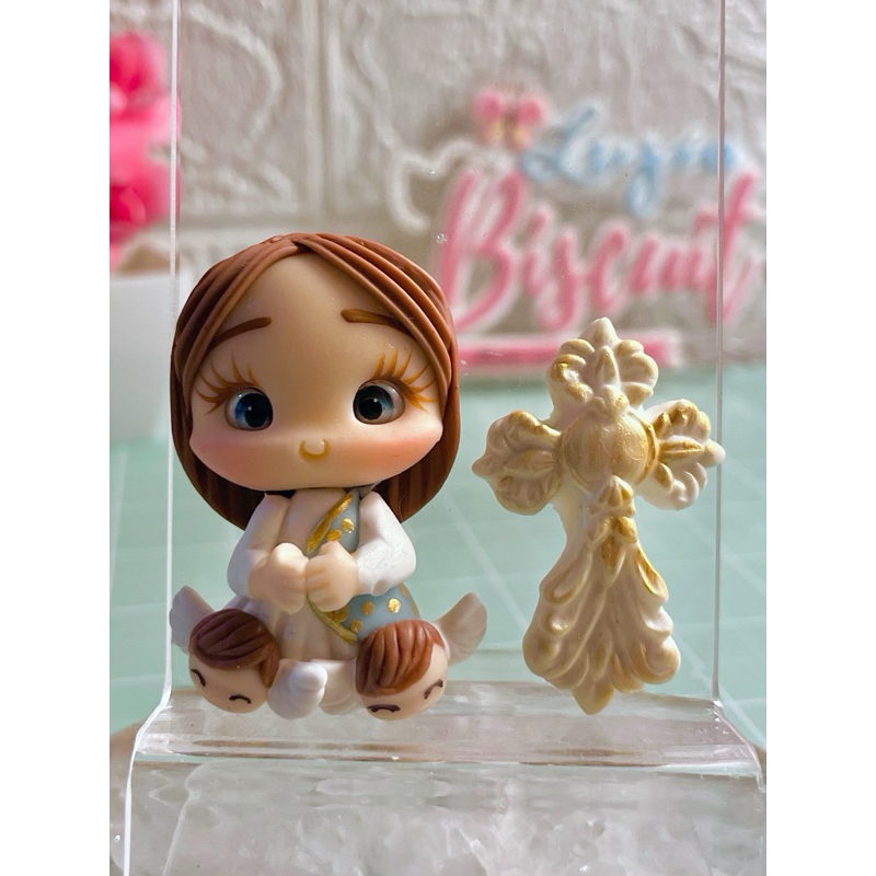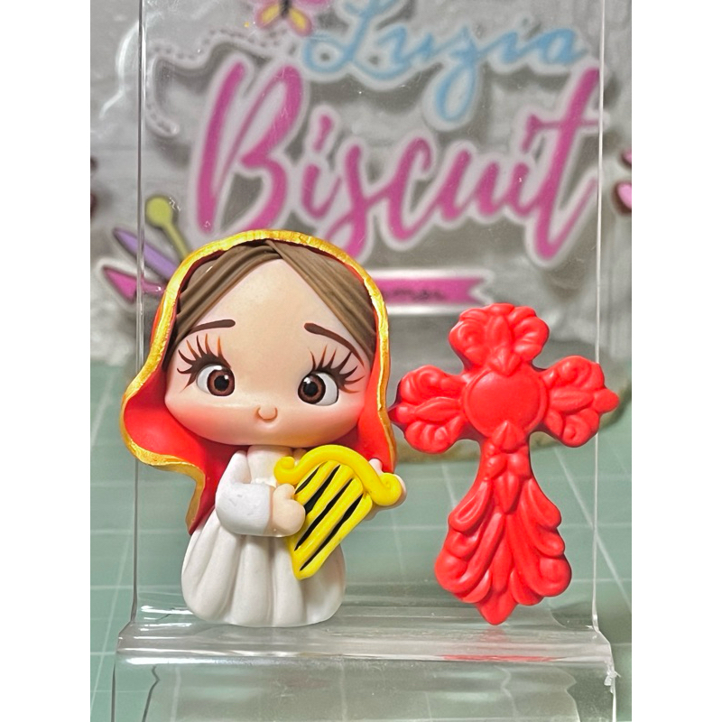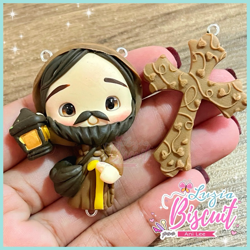 Santinho entremeio + 1pingente de cruz em biscuit para terço