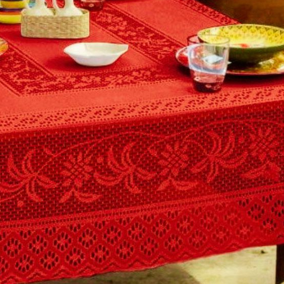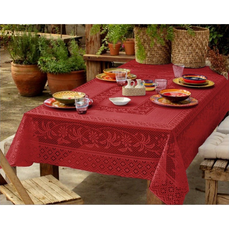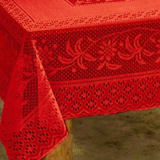 Toalha De Mesa De Renda 6 Lugares Vermelha Coqueiro 1,60x2,00cm