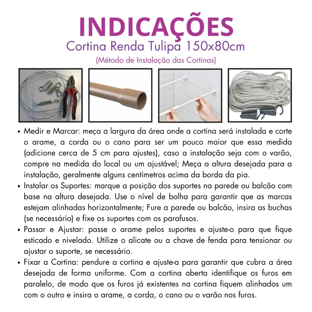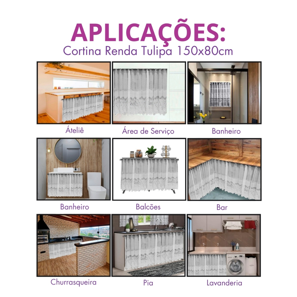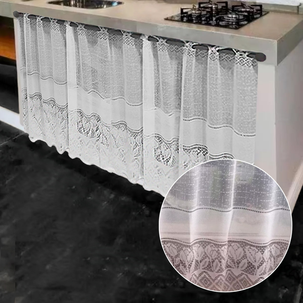 Cortina Para Pia - Balcão de Cozinha Renda Branca Duas folhas - 0,80x1,50m Desenho Floral Tulipas