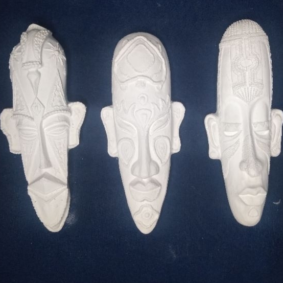 Lote 3 Mascaras Africanas Pequenas 19 Cm Peças em Gesso Cru Para Pintar ( Sem Pintura)