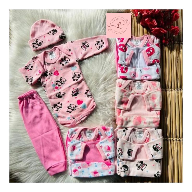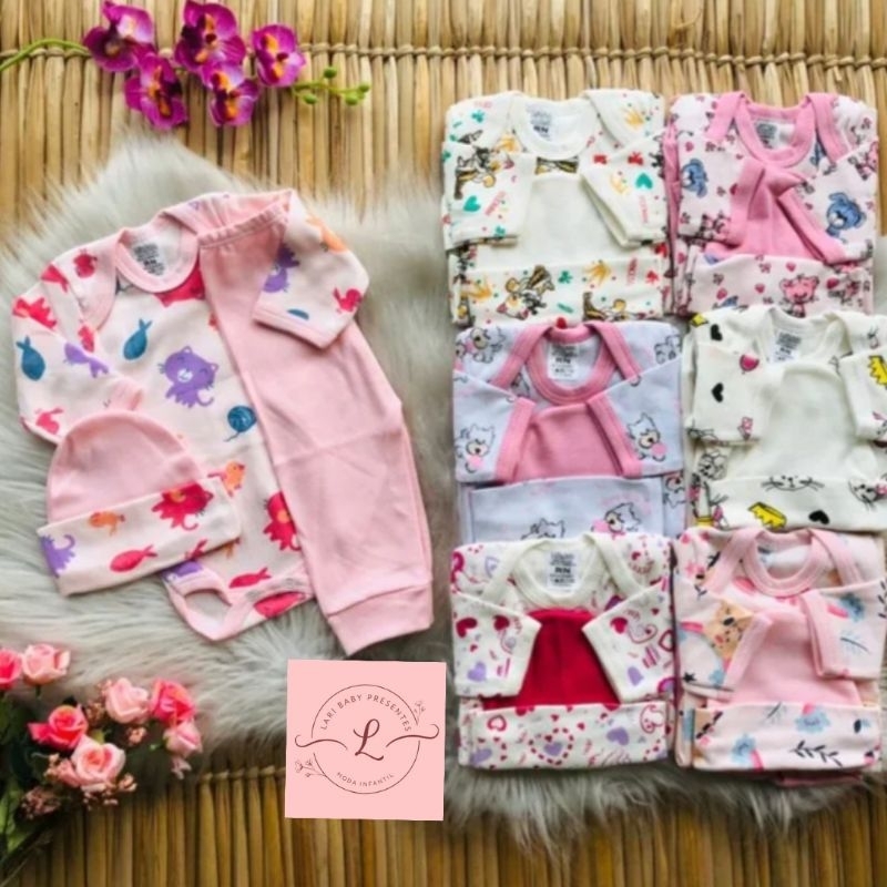 kit 16 peças de roupa bebe menina RN a G 4 body longo 4 calça 4 touca 4 meia roupa bebê feminina