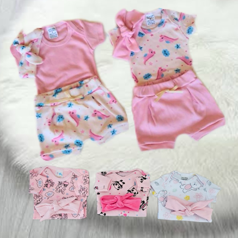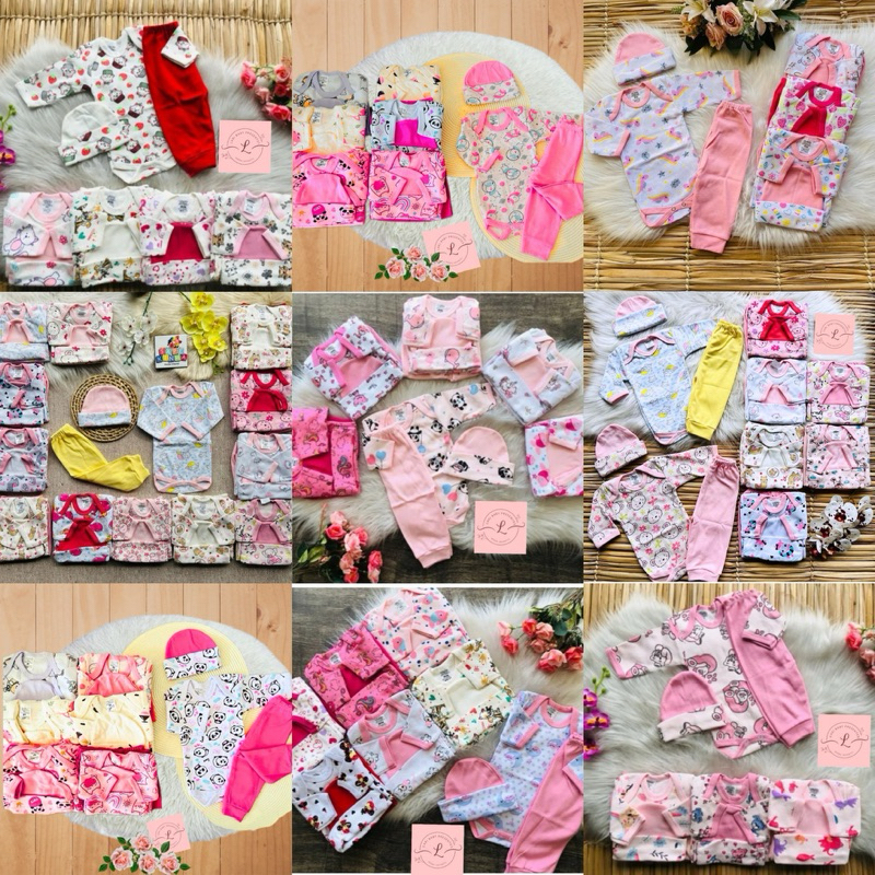 kit 6 peças de roupa menina RN P M (2 CONJUNTOS) 100% algodão Body bebê+calça+touca roupa bebe