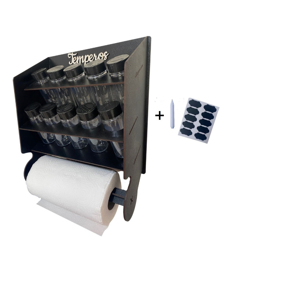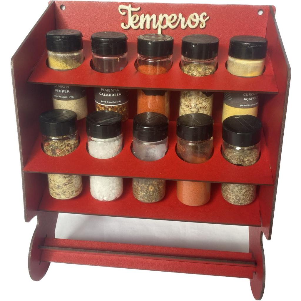 Porta Condimentos Temperos + 10 Potes Completo Premium Com Potes E Etiquetas