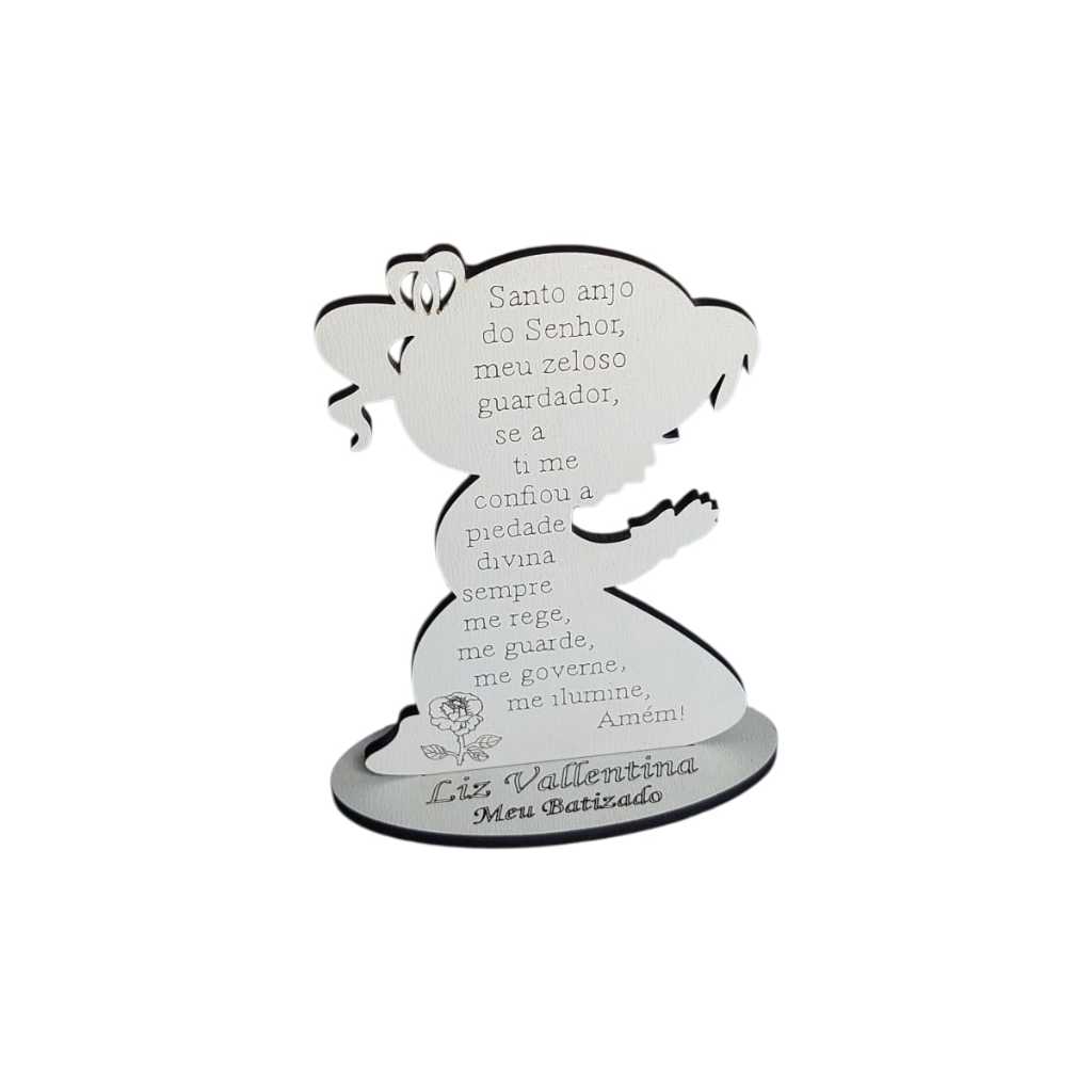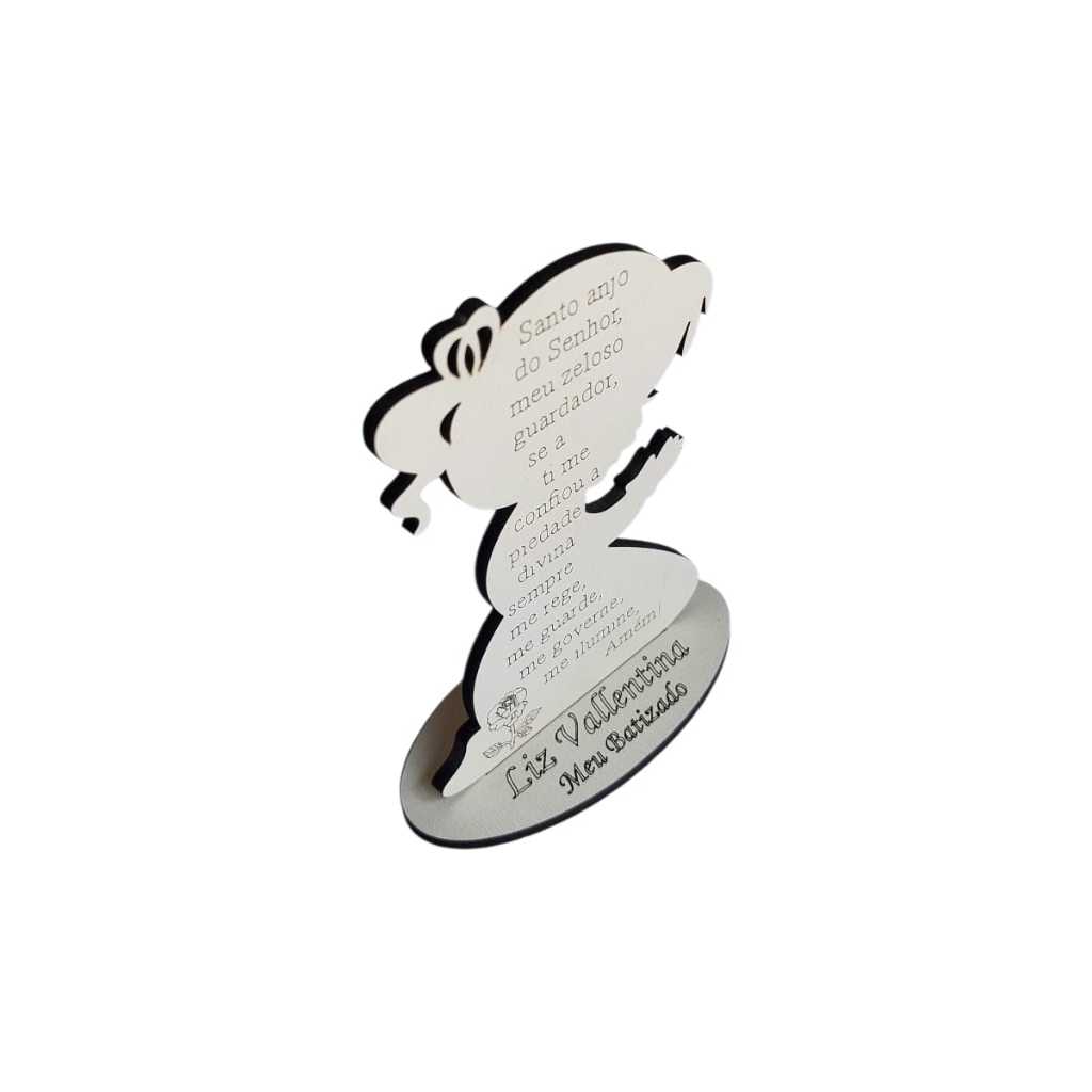 20 Lembrancinha oração santo anjo menina em mdf branco 10cm batismo