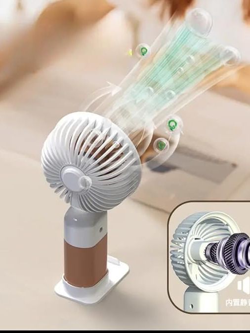 Mini Ventilador Portátil Silencioso Recarregável Mão/Mesa com Suporte de Celular.