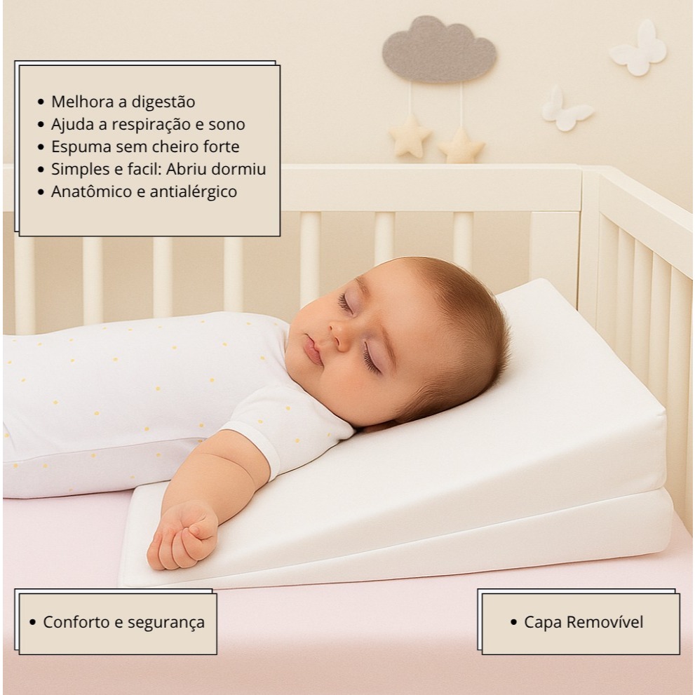 Travesseiro Rampa Anti-refluxo Com Capa Removivel Para Berço Bebe