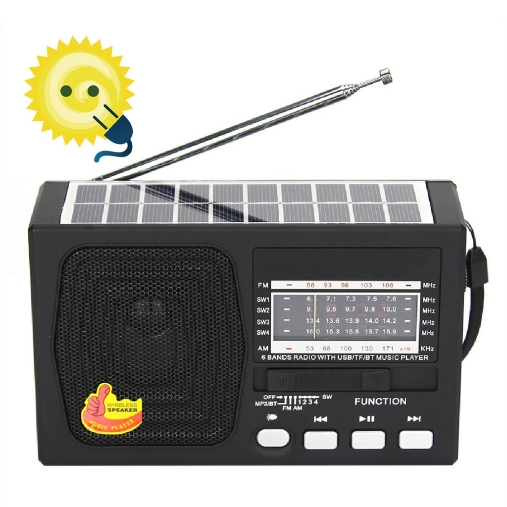 Rádio Portátil Bluetooth Painel Solar Rádio com lanterna FM USB TF