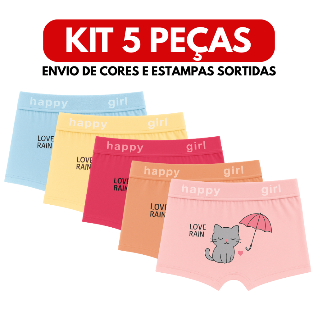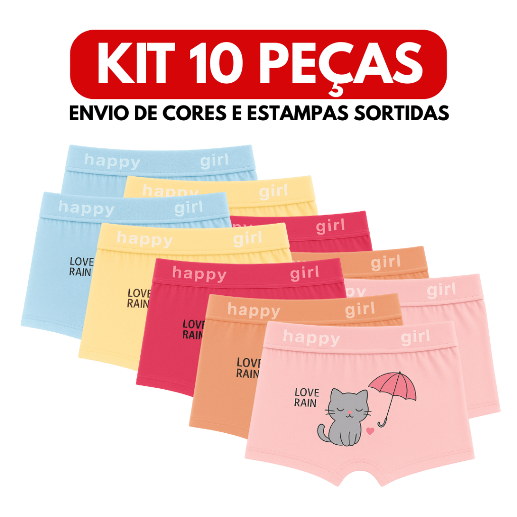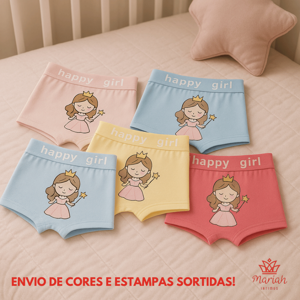 Kit 10/5/3 Calcinhas Infantil Boxer Para Meninas Tecido Respirável Cores Sortidas