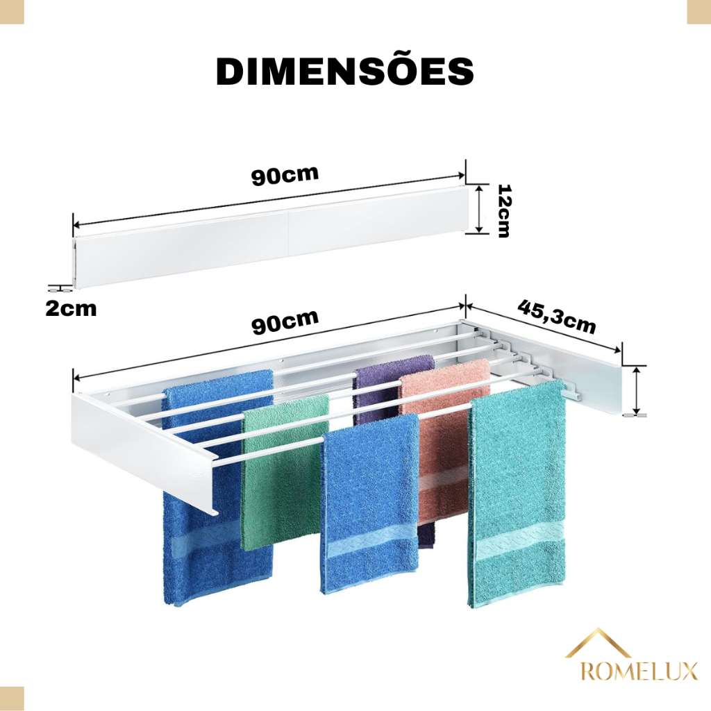 Varal Magico 90cm 5 Varetas Aluminio Branco Retratil Ap