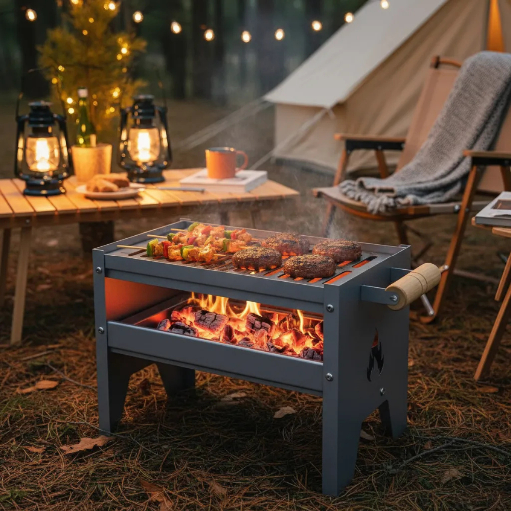 Churrasqueira Galvanizada Pequena Compacta Portátil Carvão Camping Mini Campeira Móvel