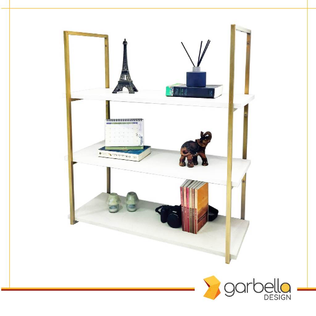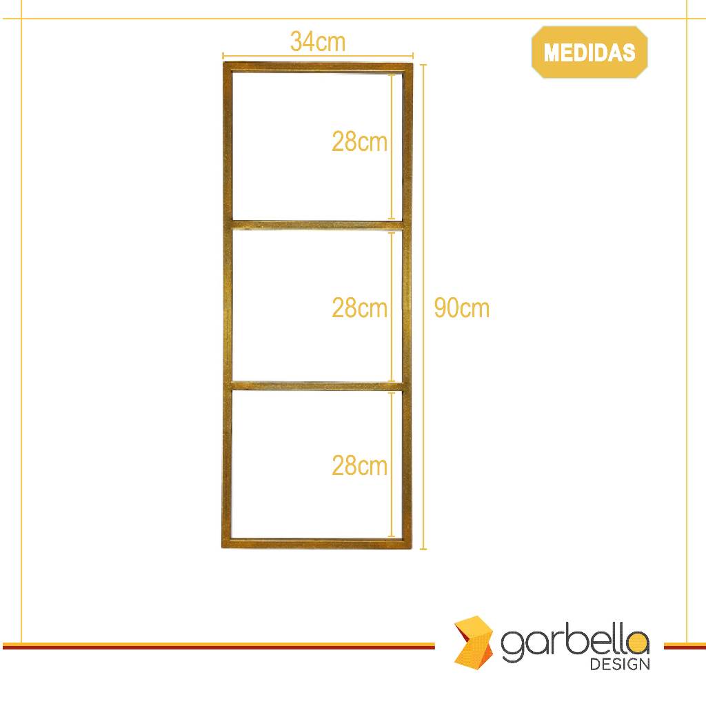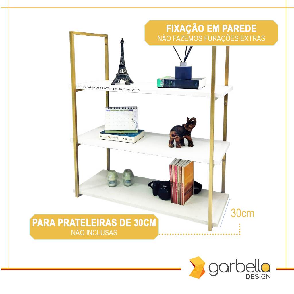 Suporte Estilo Industrial Triplo Dourado para Prateleiras de 30cm - 2 unidades (SKU3302D)