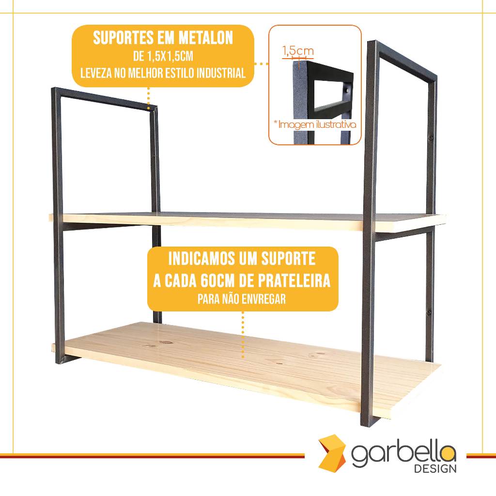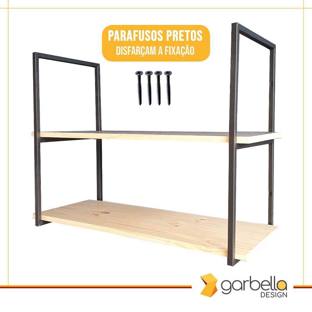 Suporte Duplo Estilo Industrial Preto para Prateleiras de 30cm - 3 UNIDADE (SKU22303)