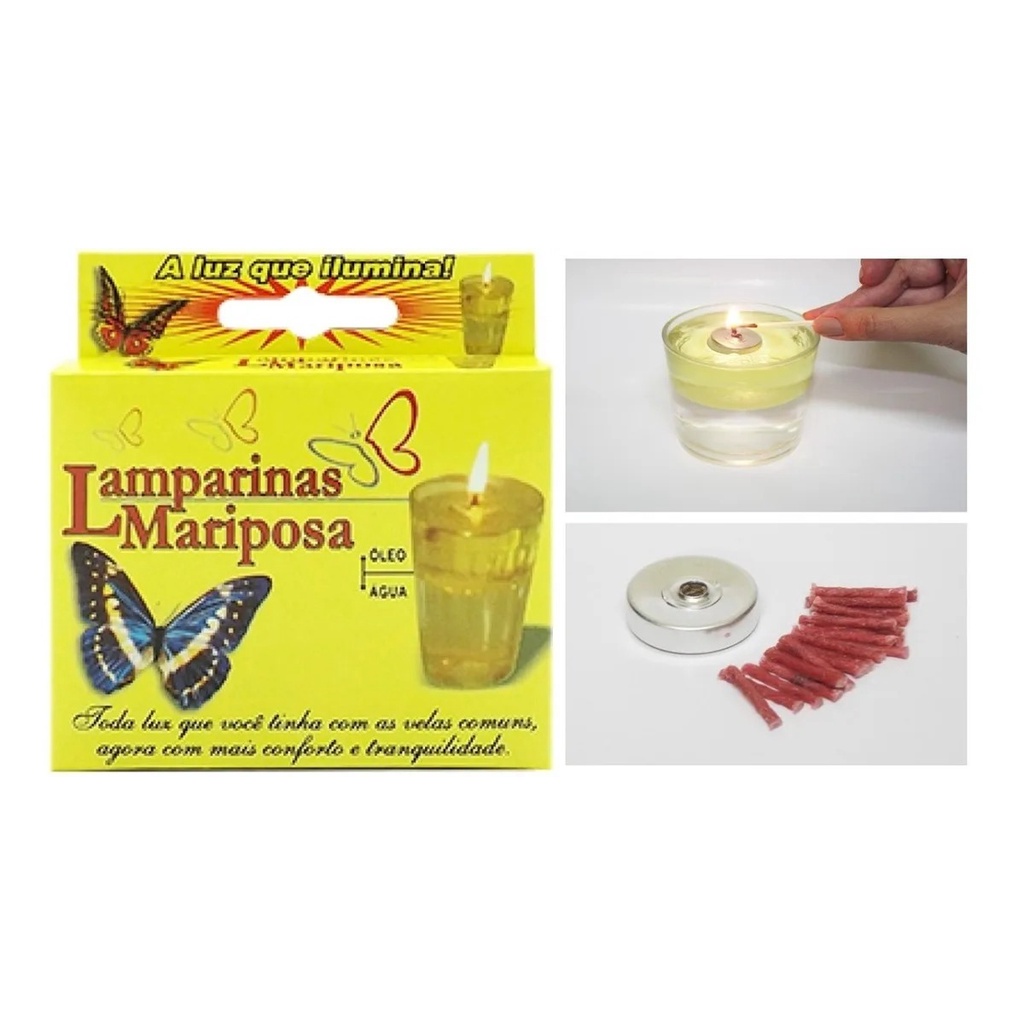 Vela Lamparina Mariposa Flutuante Acompanha 1 Boia e 20 Pavios - 1 Caixa