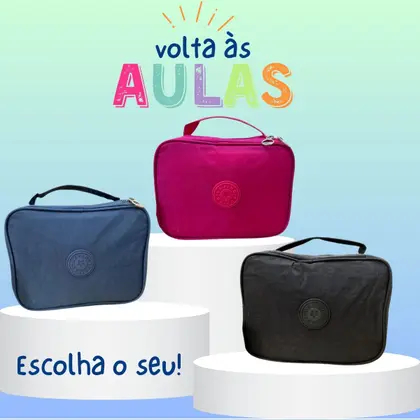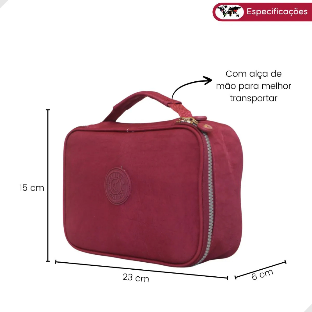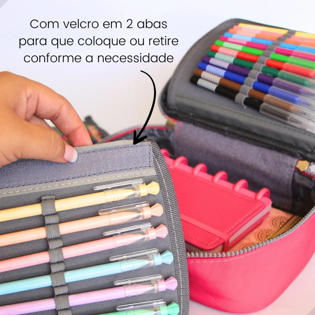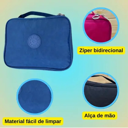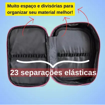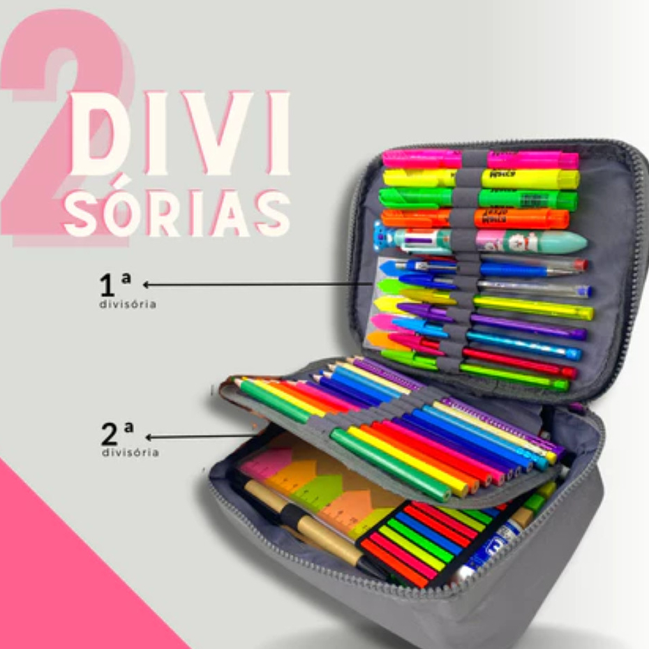 Estojo Escolar Box Organizador Grande 2 Divisórias Portátil em Nylon Lápis Caneta Fecho de Zíper