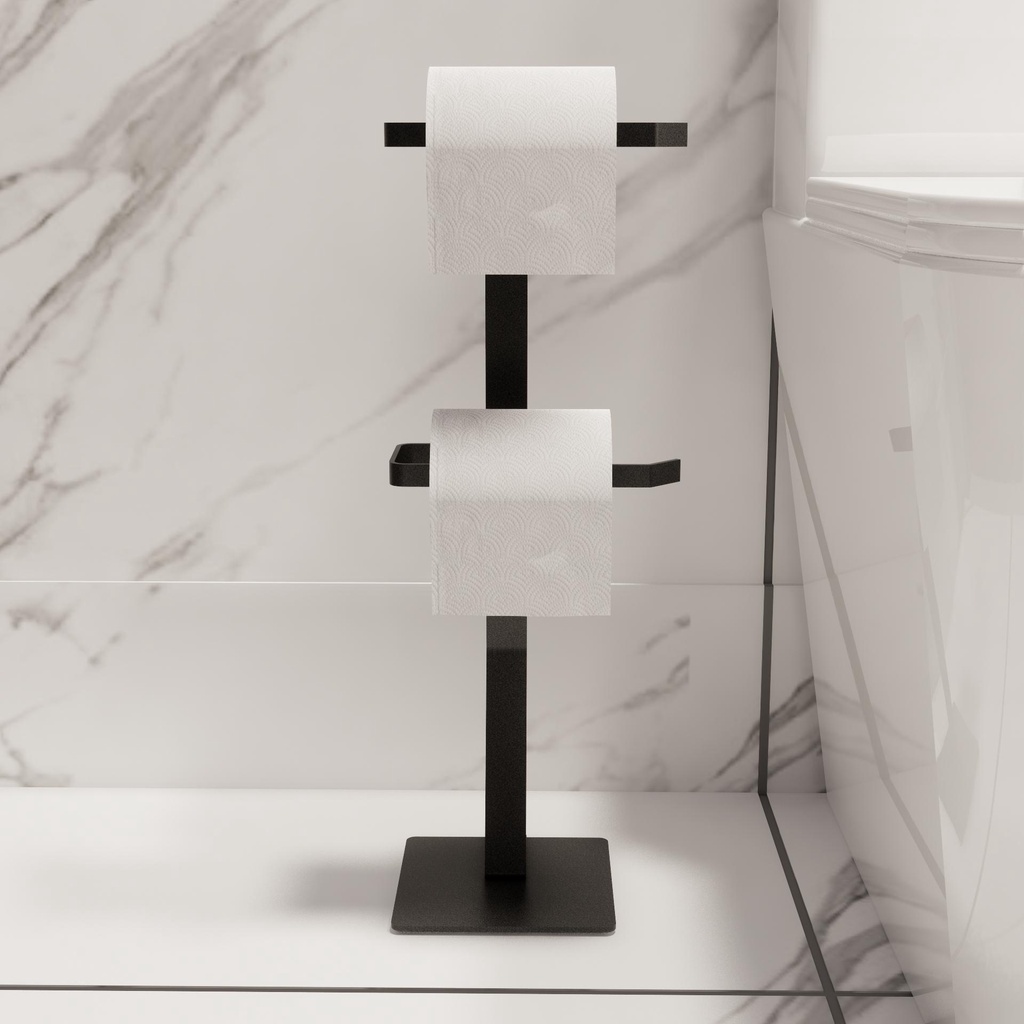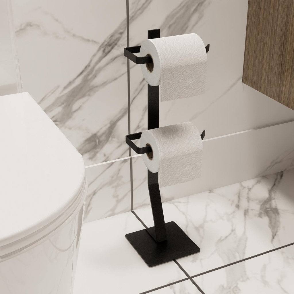 porta papel higiênico chão suporte papeleiro reforçado banheiro lavabo duplo reserva preto