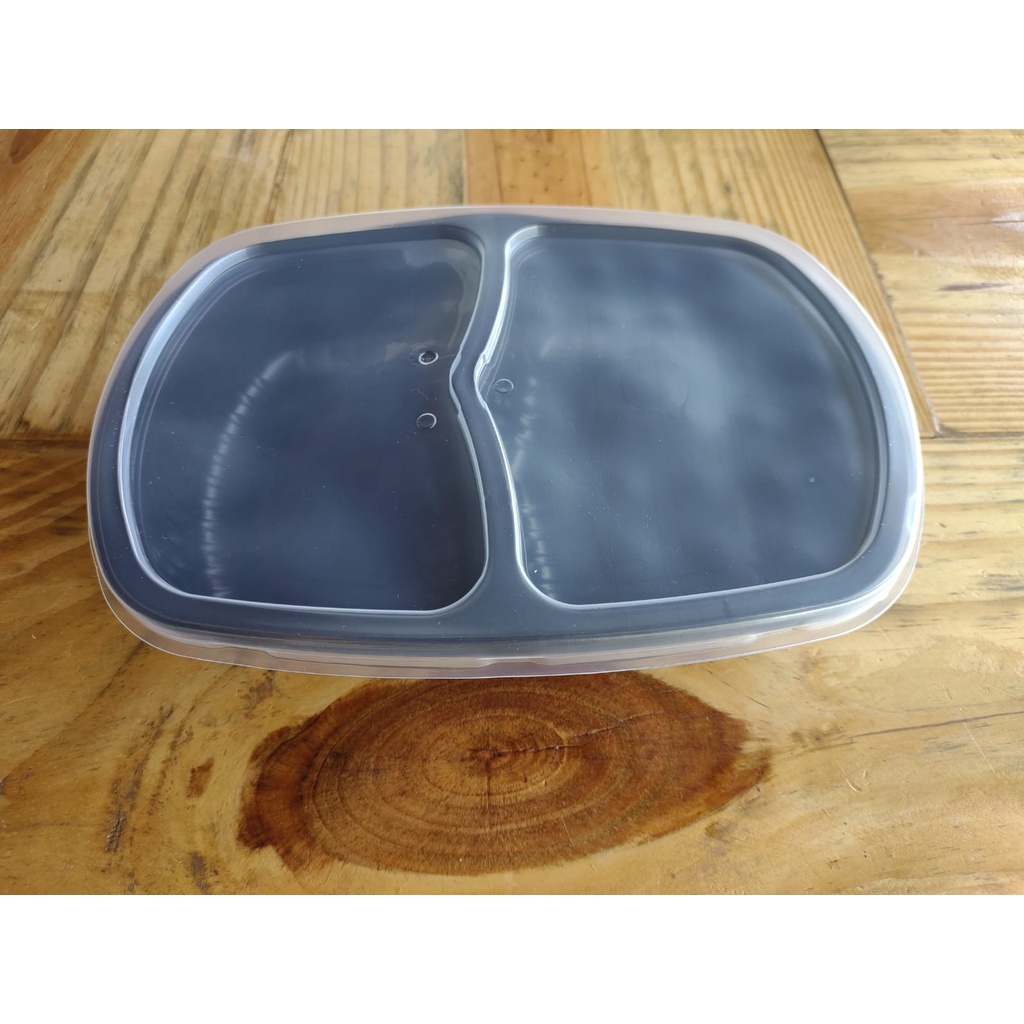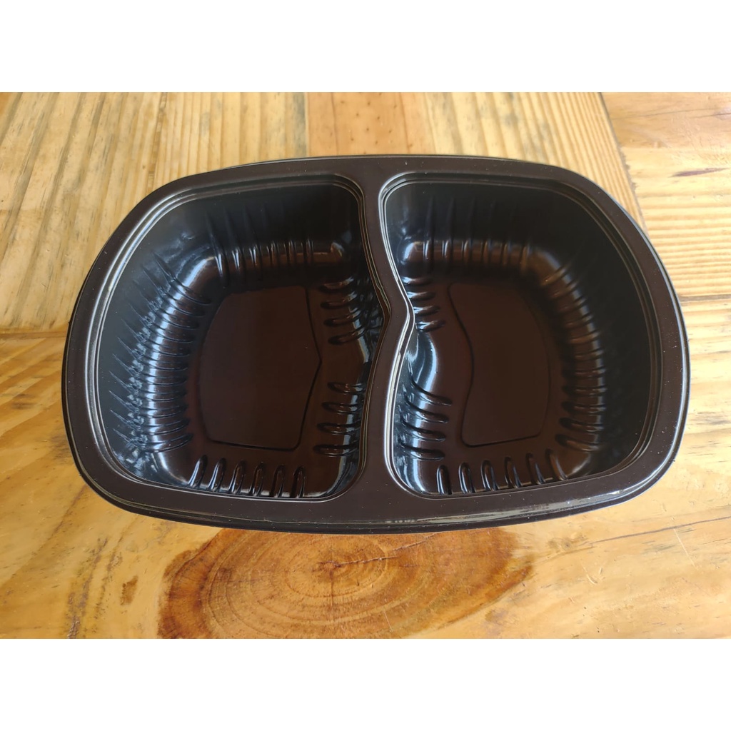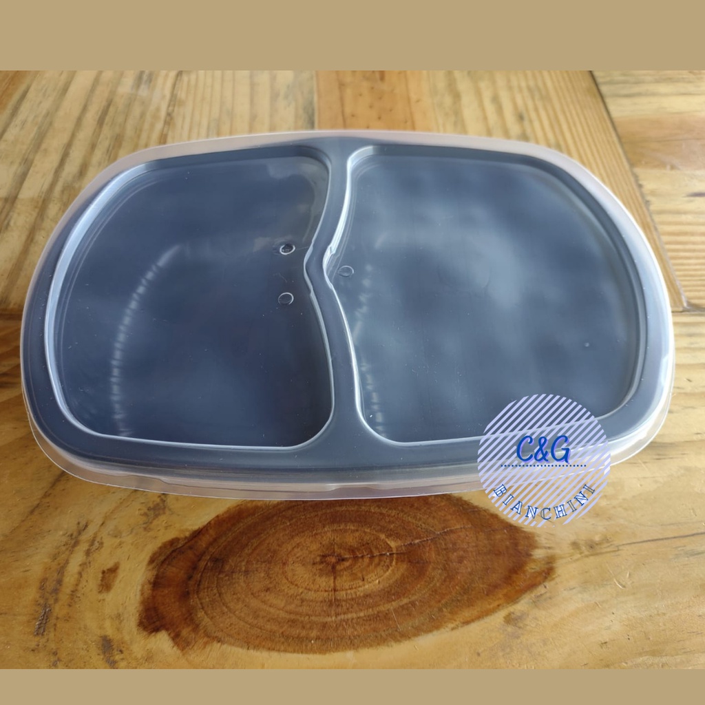 20 un Marmita Plástica Reutilizável 2 Divisões 1150ml c/Tampa G322 Preta Galvanotek Premium