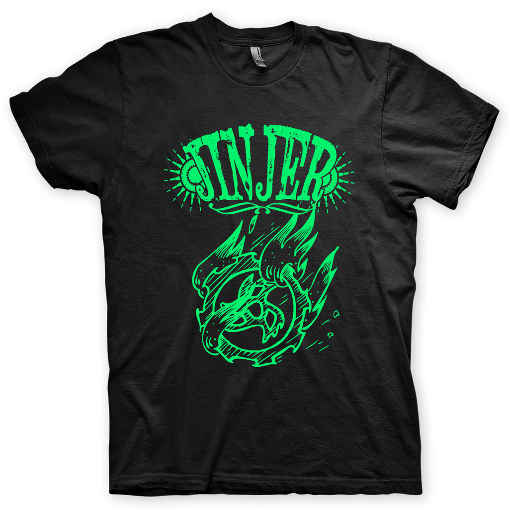 Camiseta Jinjer Preta e Verde em Silk 100% Algodão