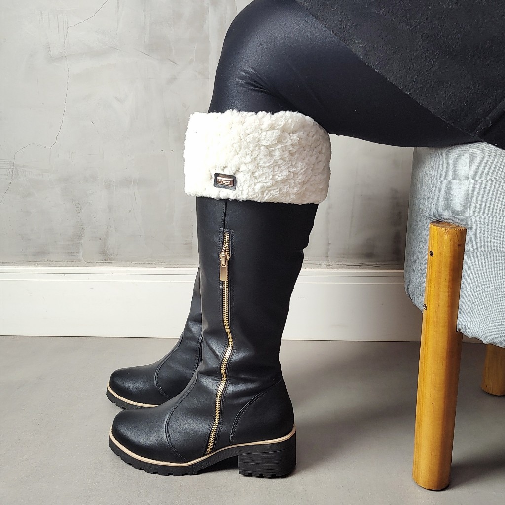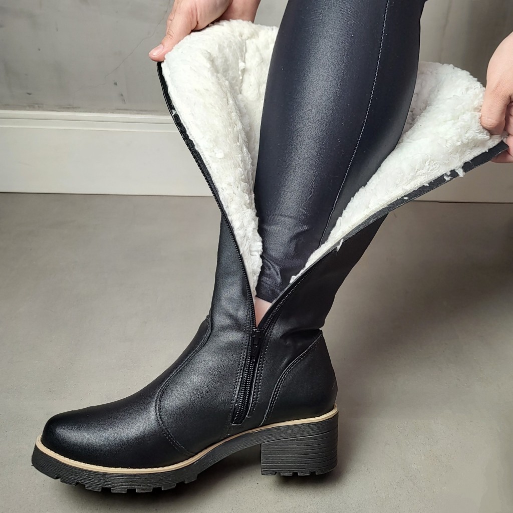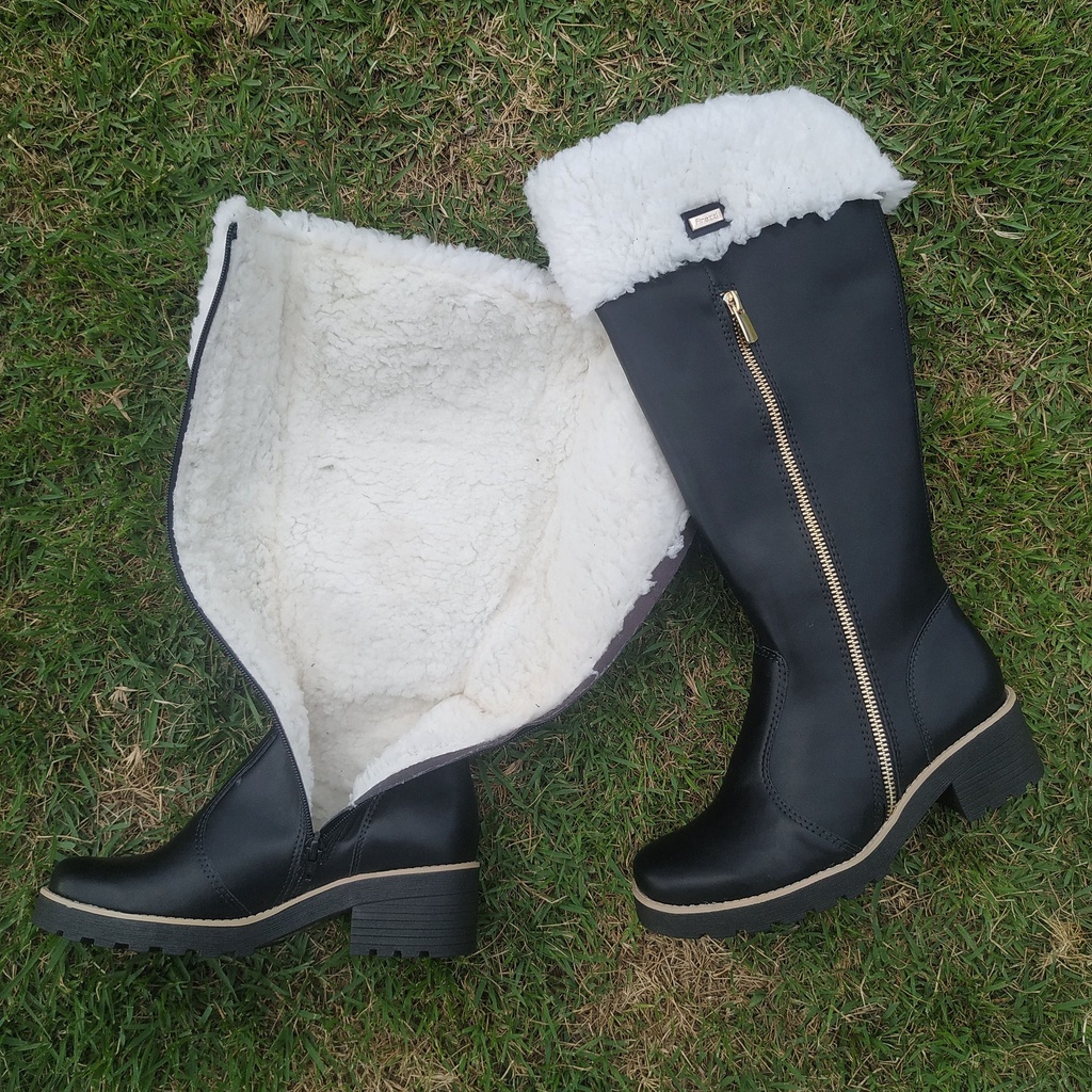Bota Cano alto com lã Natales Napa Preta Forrada com Lã
