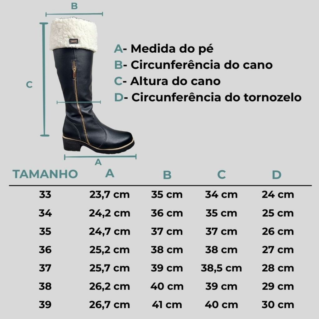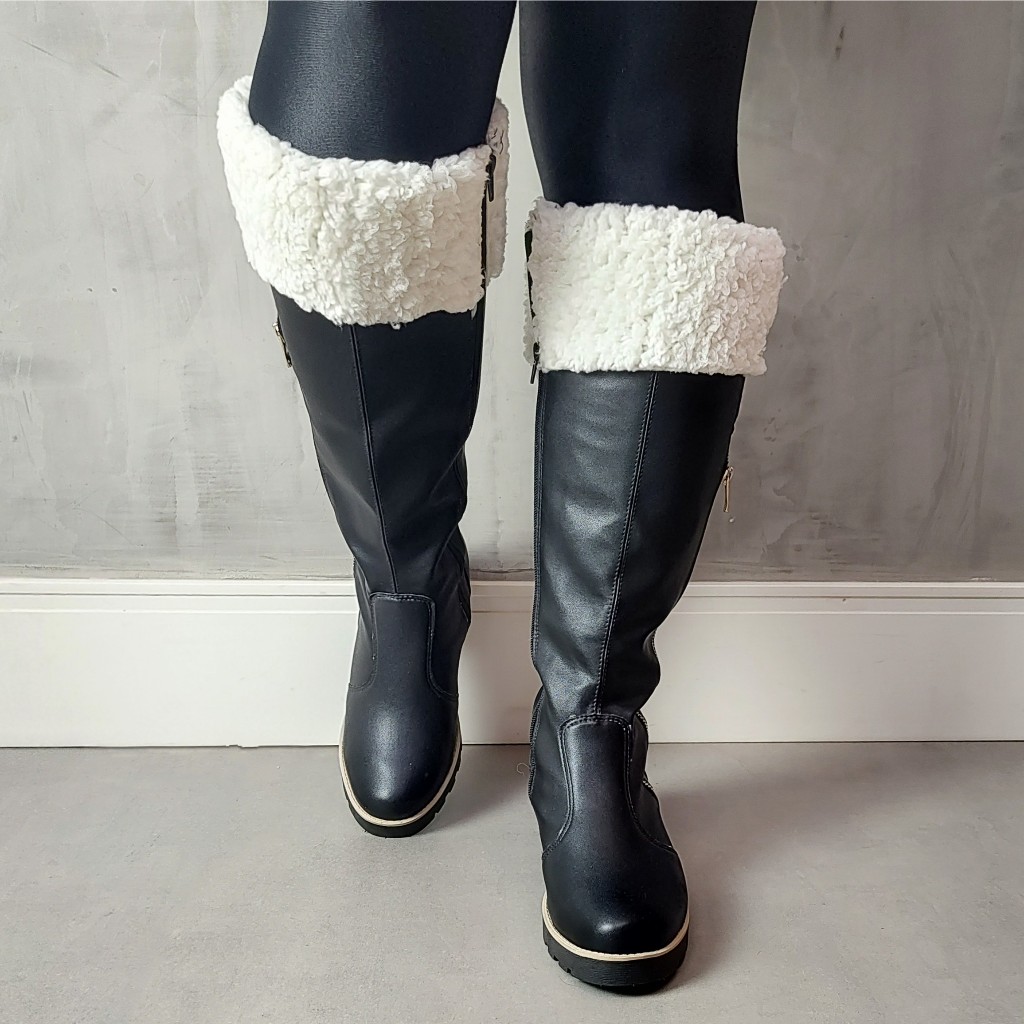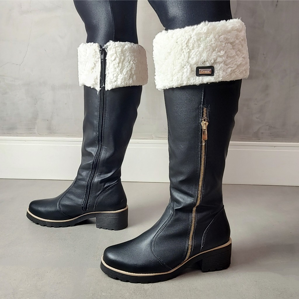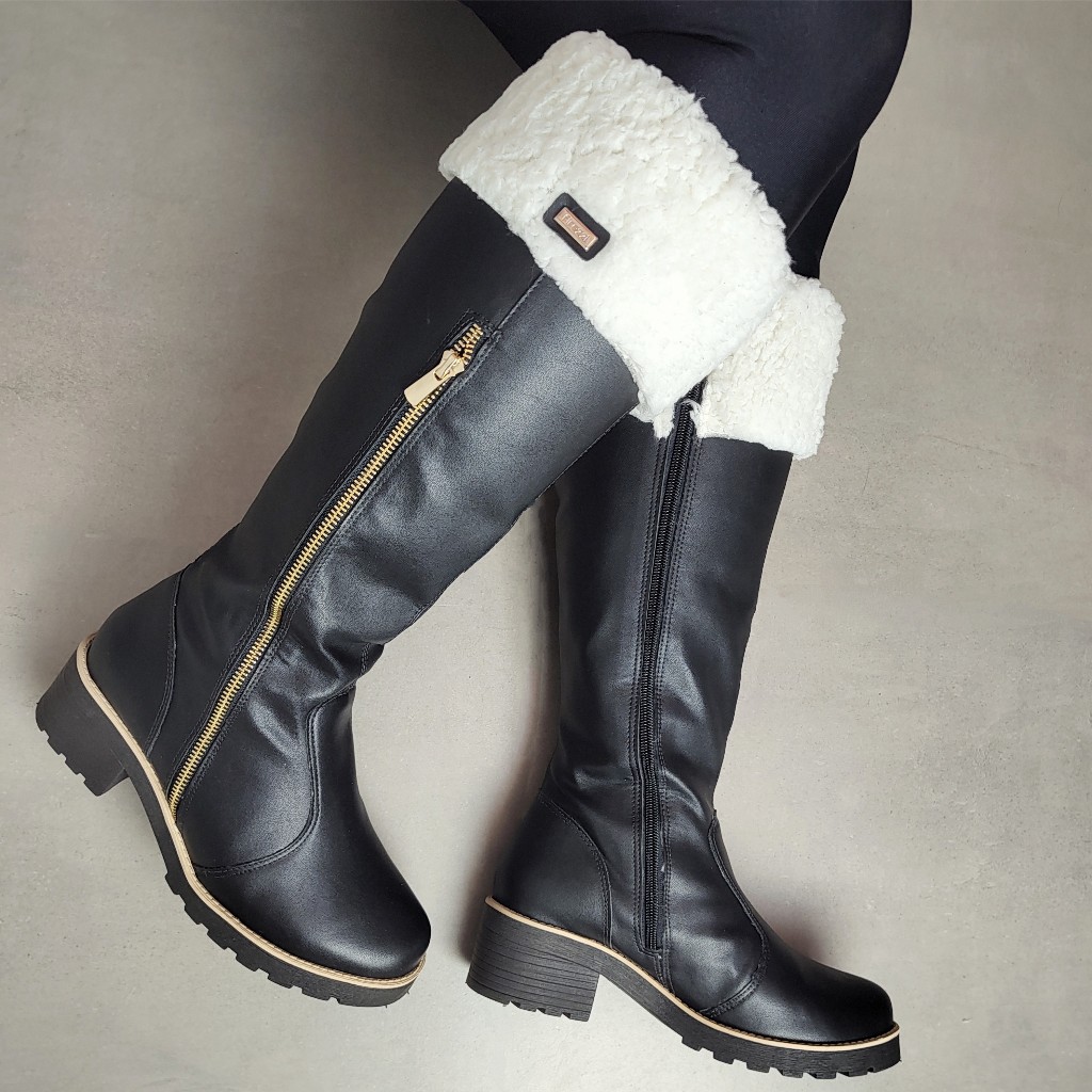 Bota Cano alto com lã Natales Napa Preta Forrada com Lã