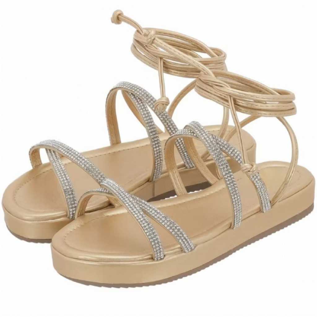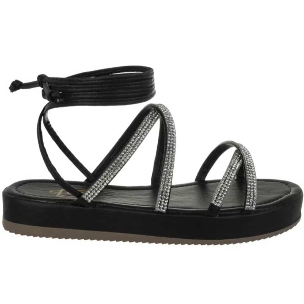 Sandália Feminina Flatform Amarração e Tira com Brilho ref.944/4