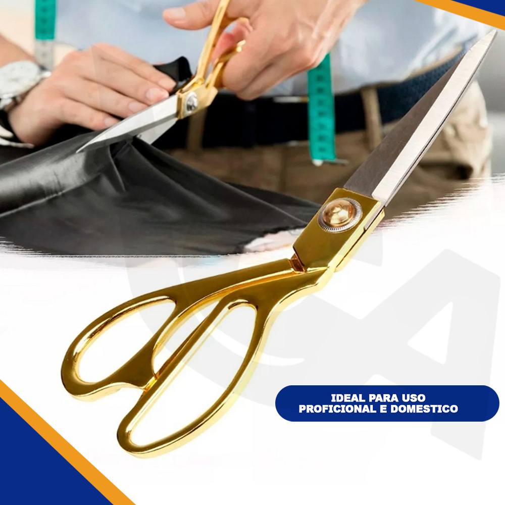Tesoura Costura Profissional Aço Inox Dourada Alfaiate Tecido Pano 3 Tamanhos Disponíveis