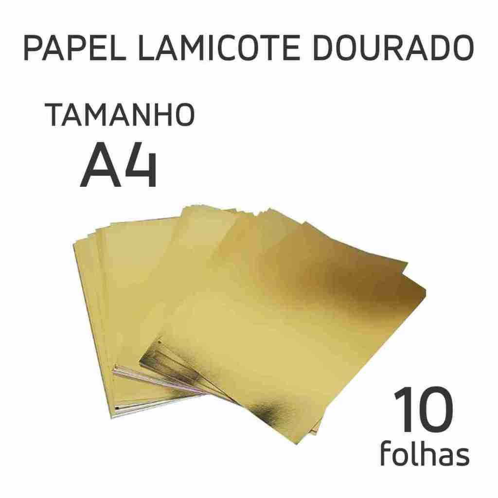 Papel Lamicote Dourado 250g A4 Laminado Kit 10 a 50 Folhas