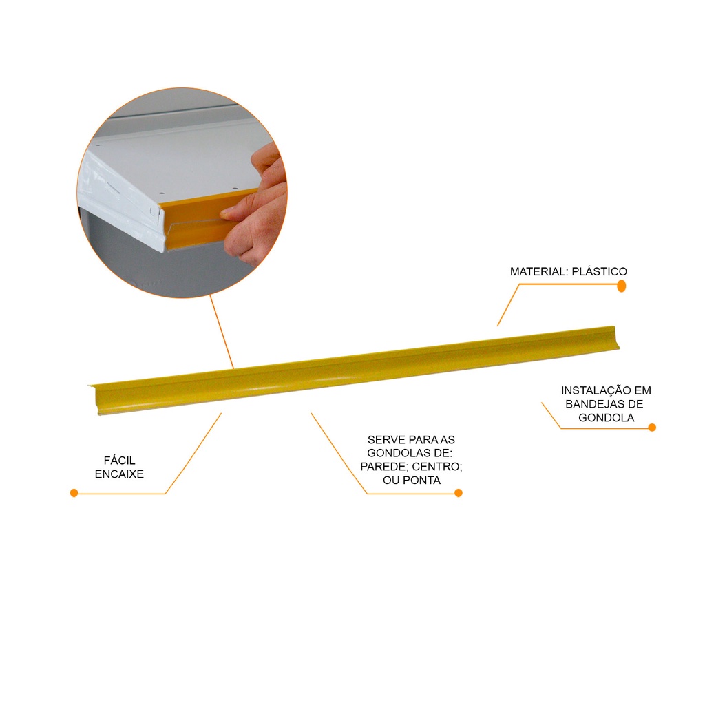KIT - 5 Porta Etiqueta para prateleira Gondola Simples 91cm com Acrílico New Plus SA ou Amapa