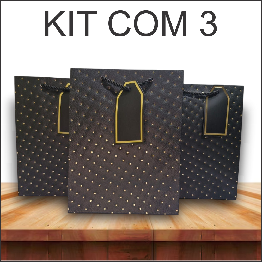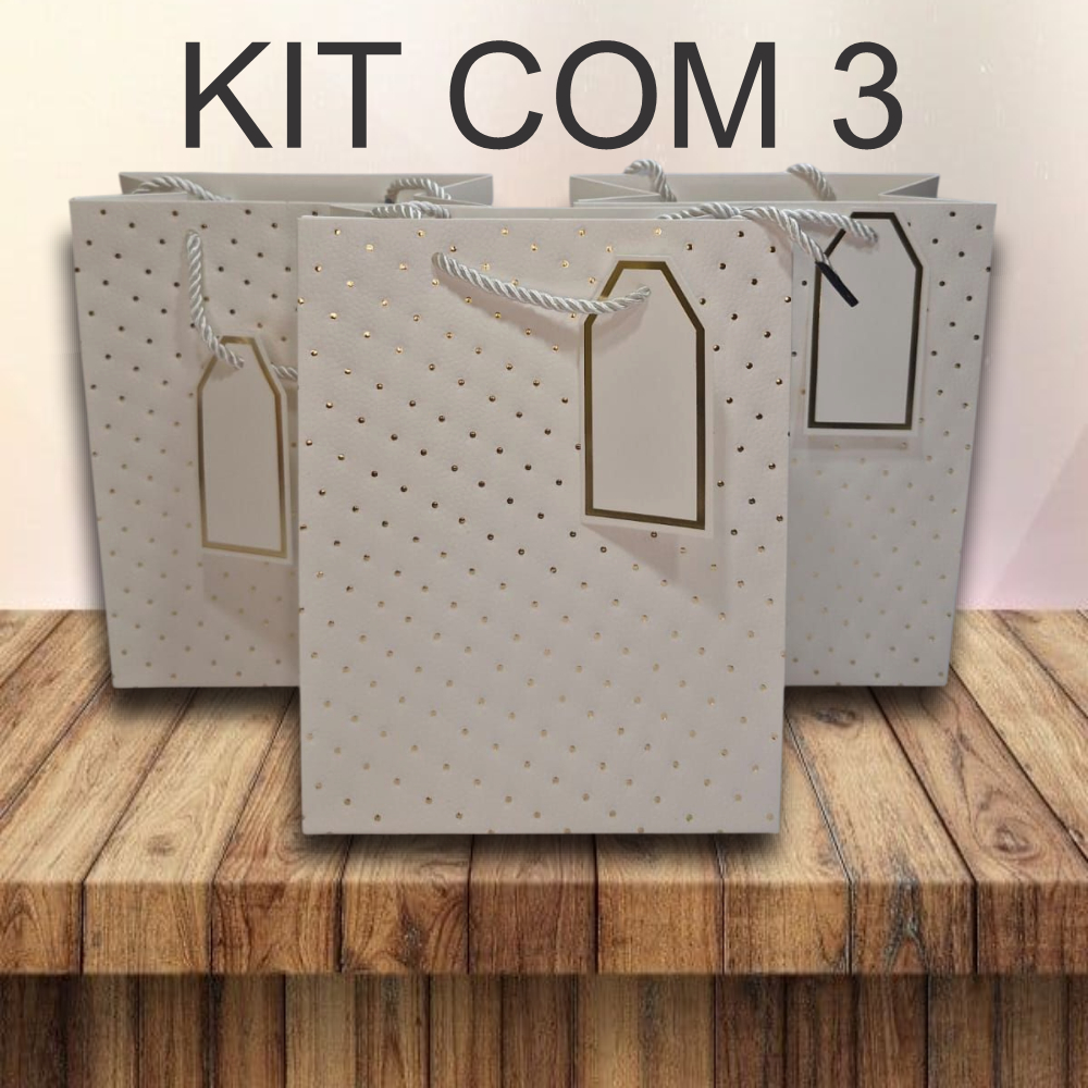 Sacola kit com 3 unidades - Bolsas Para Presente LUXO 23x18x10cm - FWB