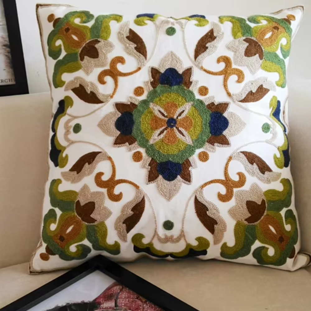 Capa De Almofada Bordada Flores Artesanato 1PÇA - (Sem enchimento)