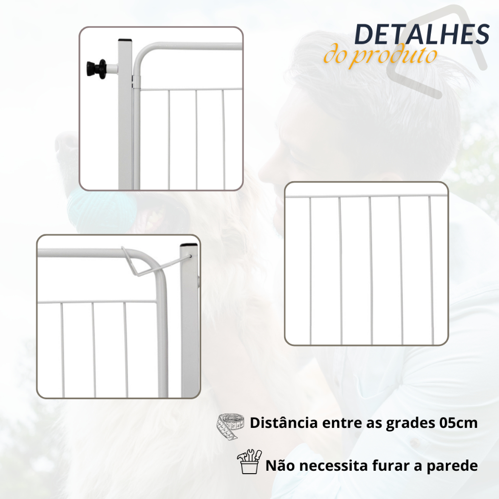 Grade Portão Proteção Portas Corredor Escadas Bebe Cachorro Com 2 Extensor 30cm Itagold