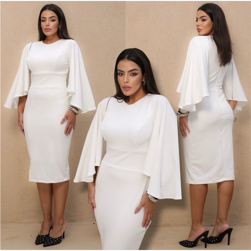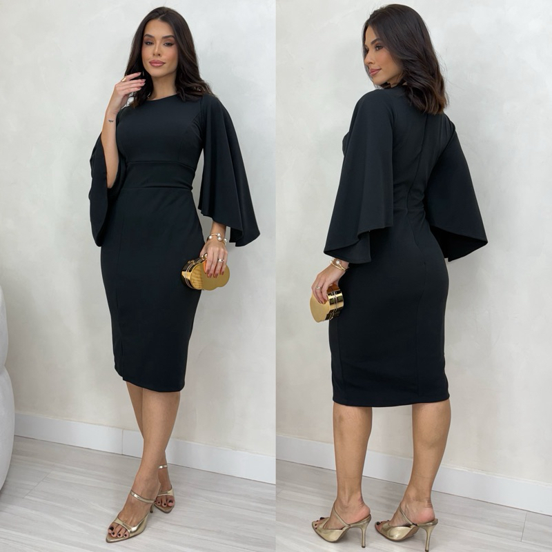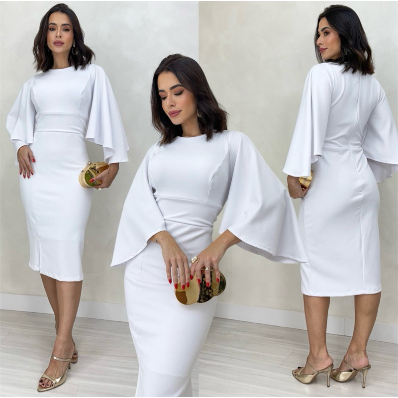 0050 - Vestido com Mangas mídi Modesta Slim - Plus Size - Noiva Civil / Convidada / Festa / Evangélica / Social / cristã