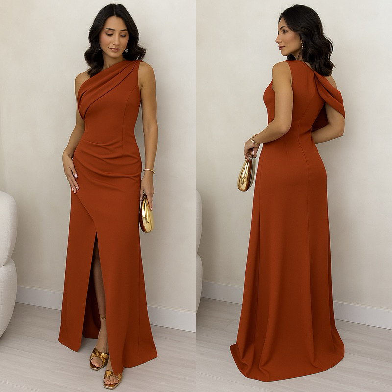 0051 - Vestido Longo mula manga com fenda frontal - Festa / Madrinha / Casamento / Formatura / ombro a ombro