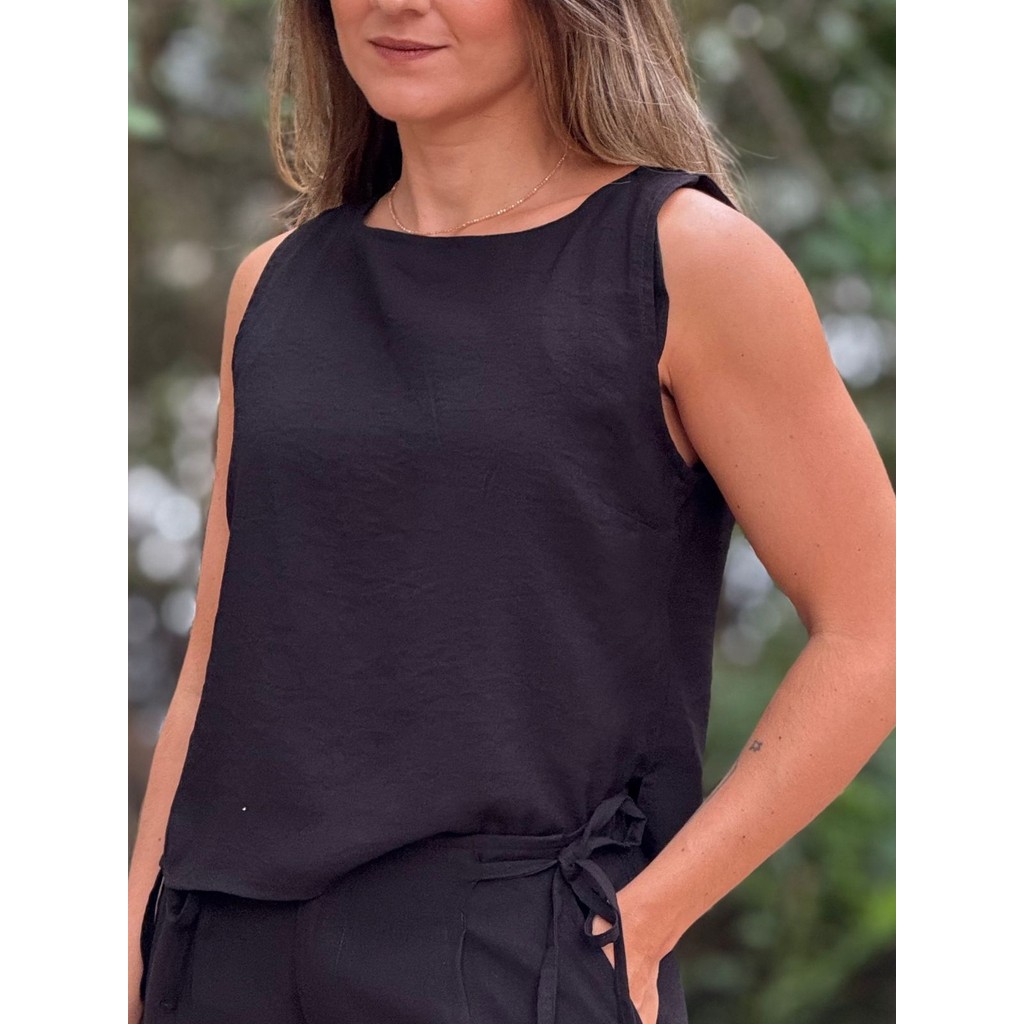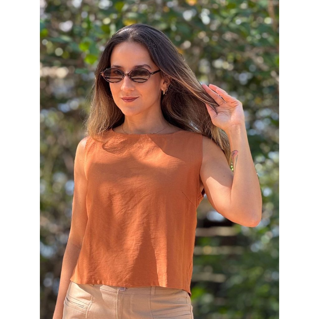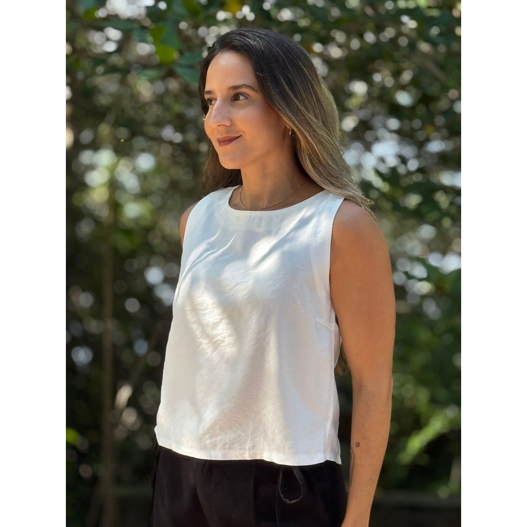 Blusa Feminina Estilo Regata Viet Type Com Botões Nas Costas de Viscose Básica Estilosa e Lisa